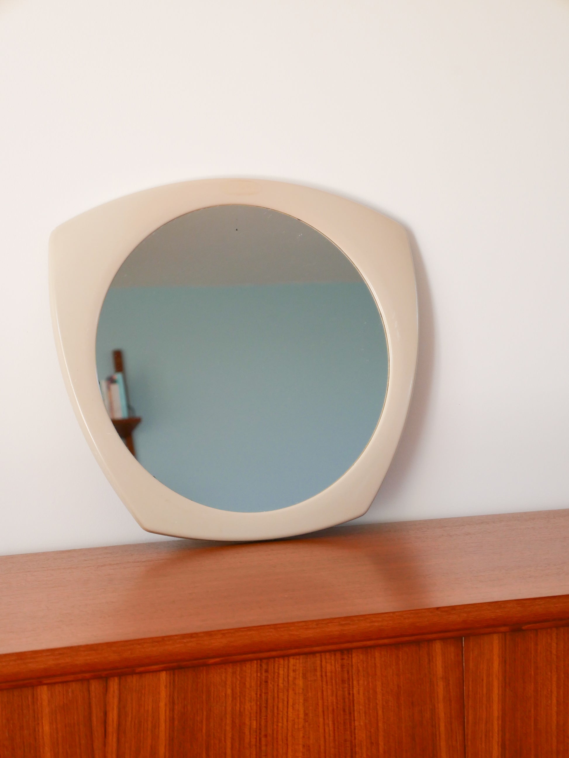 Miroir en plastique, Ivoire, Design, 1970 - 38 cm