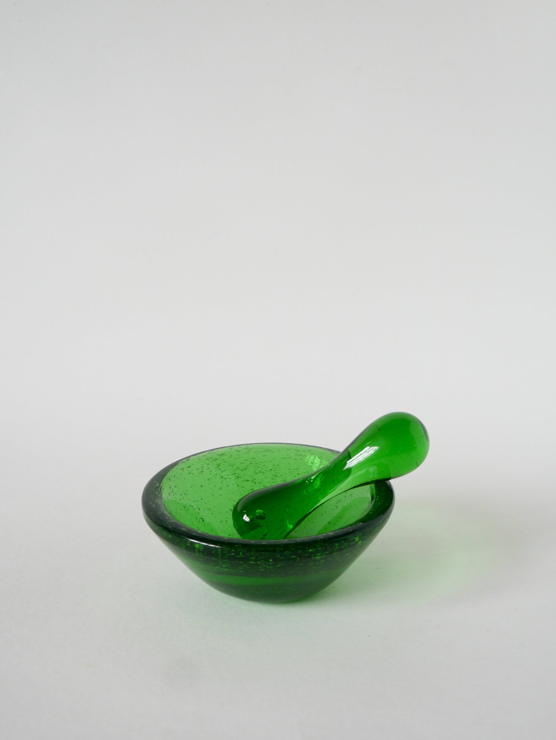Mortier et pilon en verre bullé style Biot, Vert, 1960