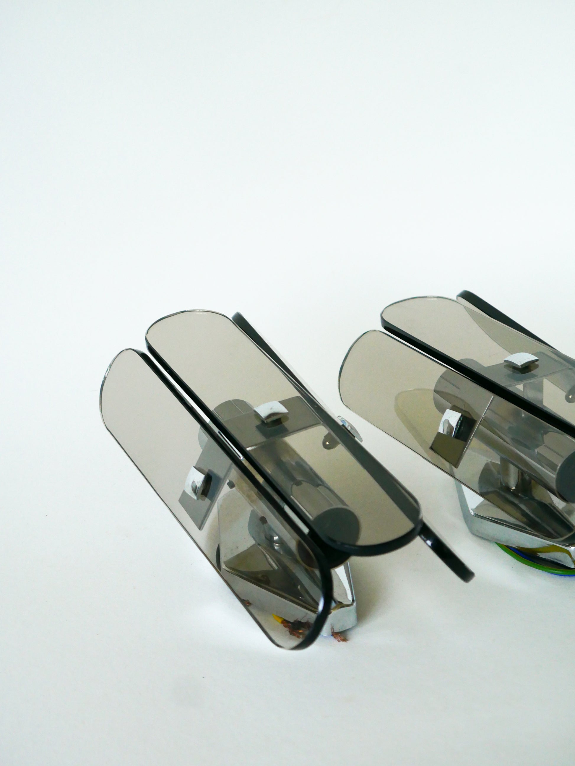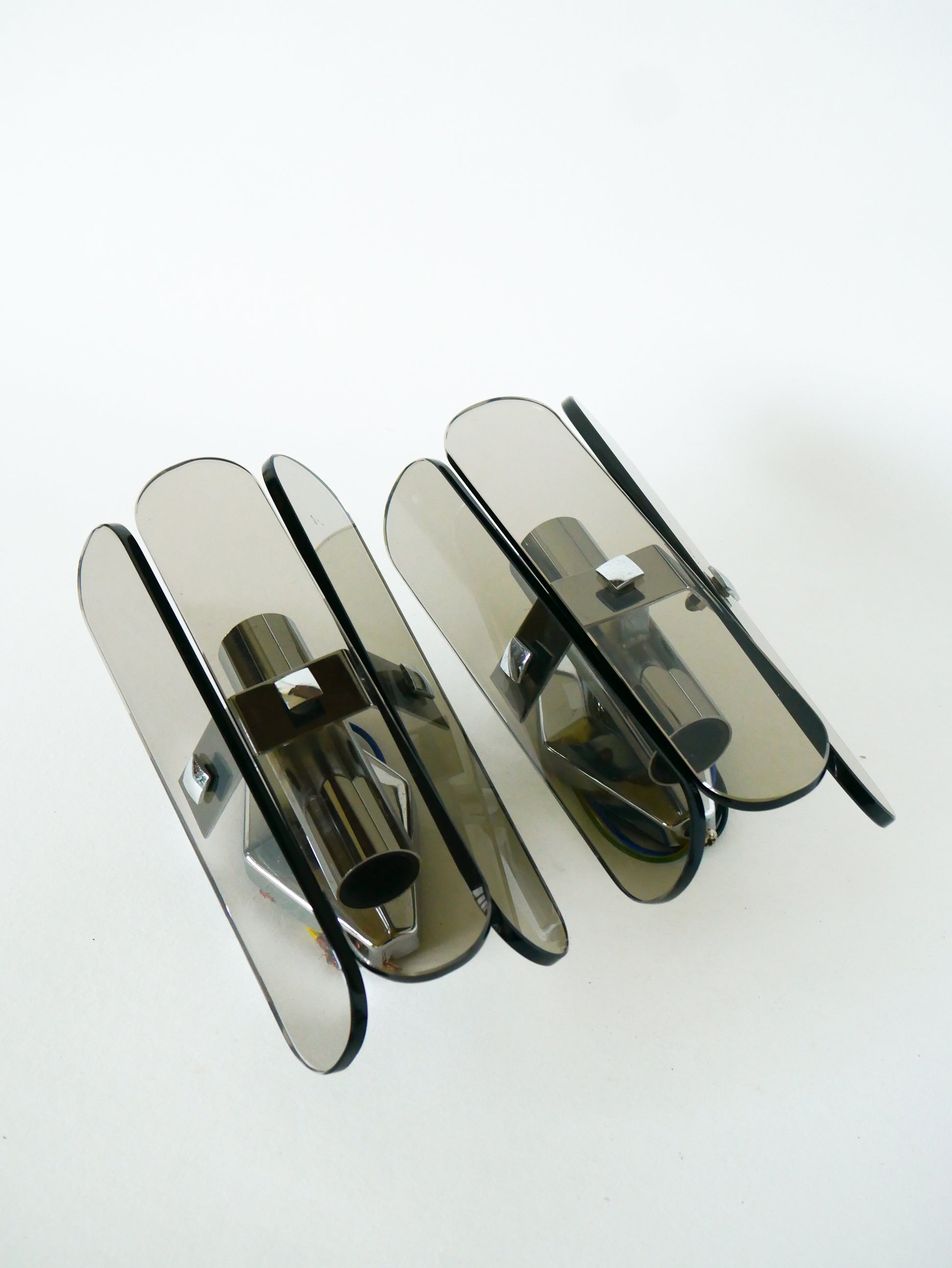 Paire d'appliques en verre fumé, Fontana Arte, Design Italien, 1970