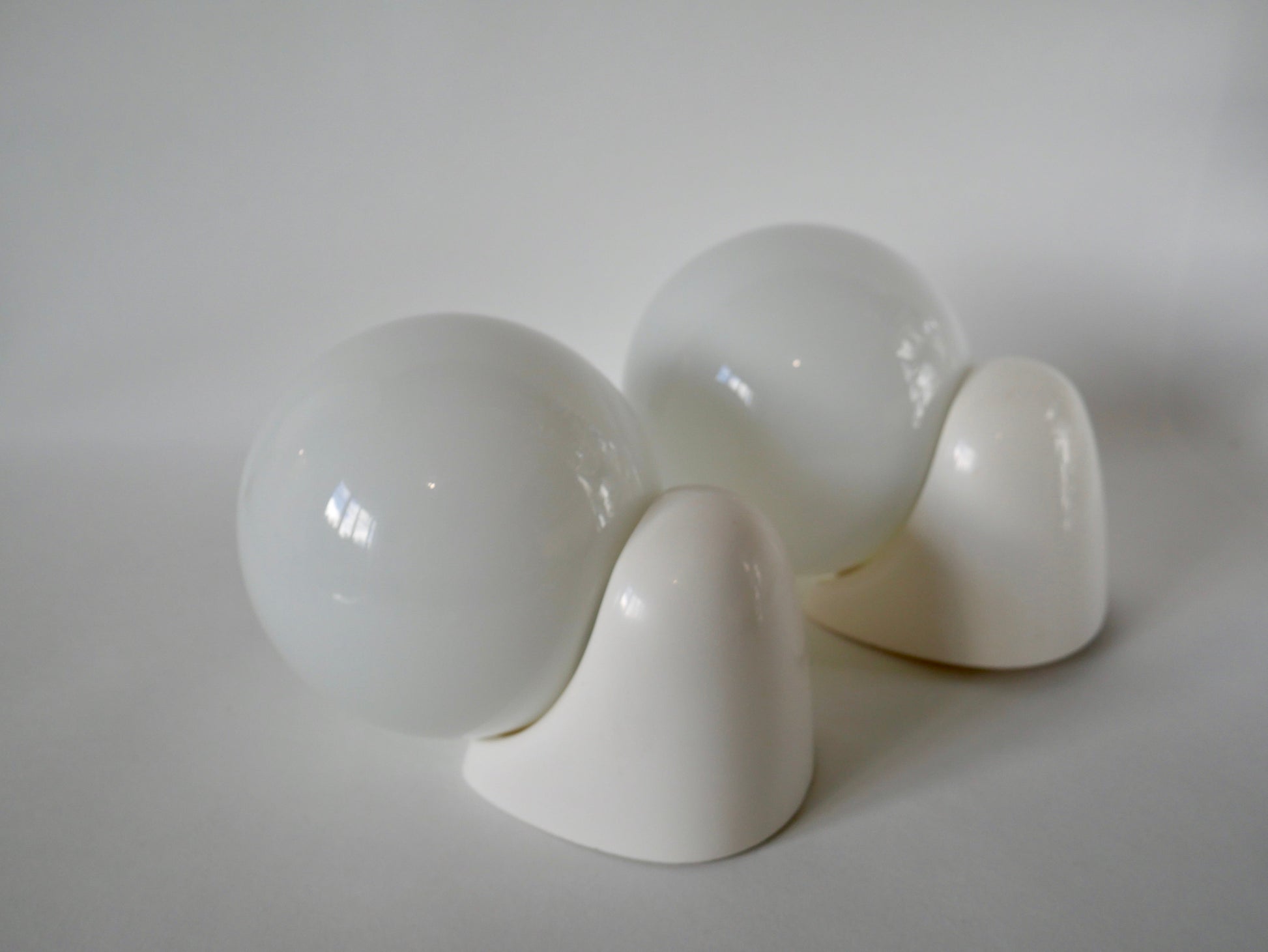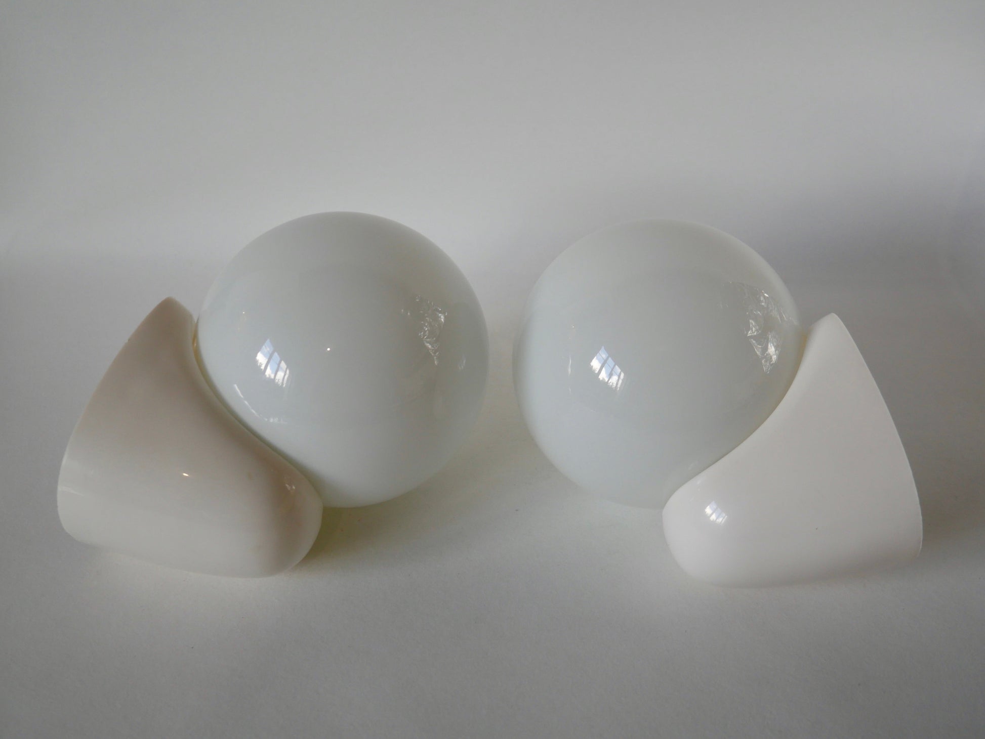Paire d'appliques murales design Tissot Space Age opaline et plexi Made in France modèle déposé années 70