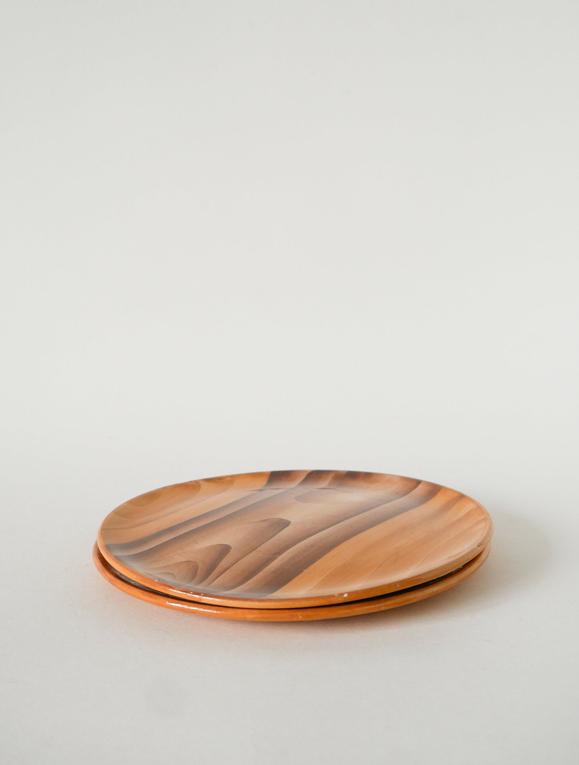 Paire d'assiettes à dessert en céramique, effet bois, Vallauris Grandjean-Jourdan, Design, 1960