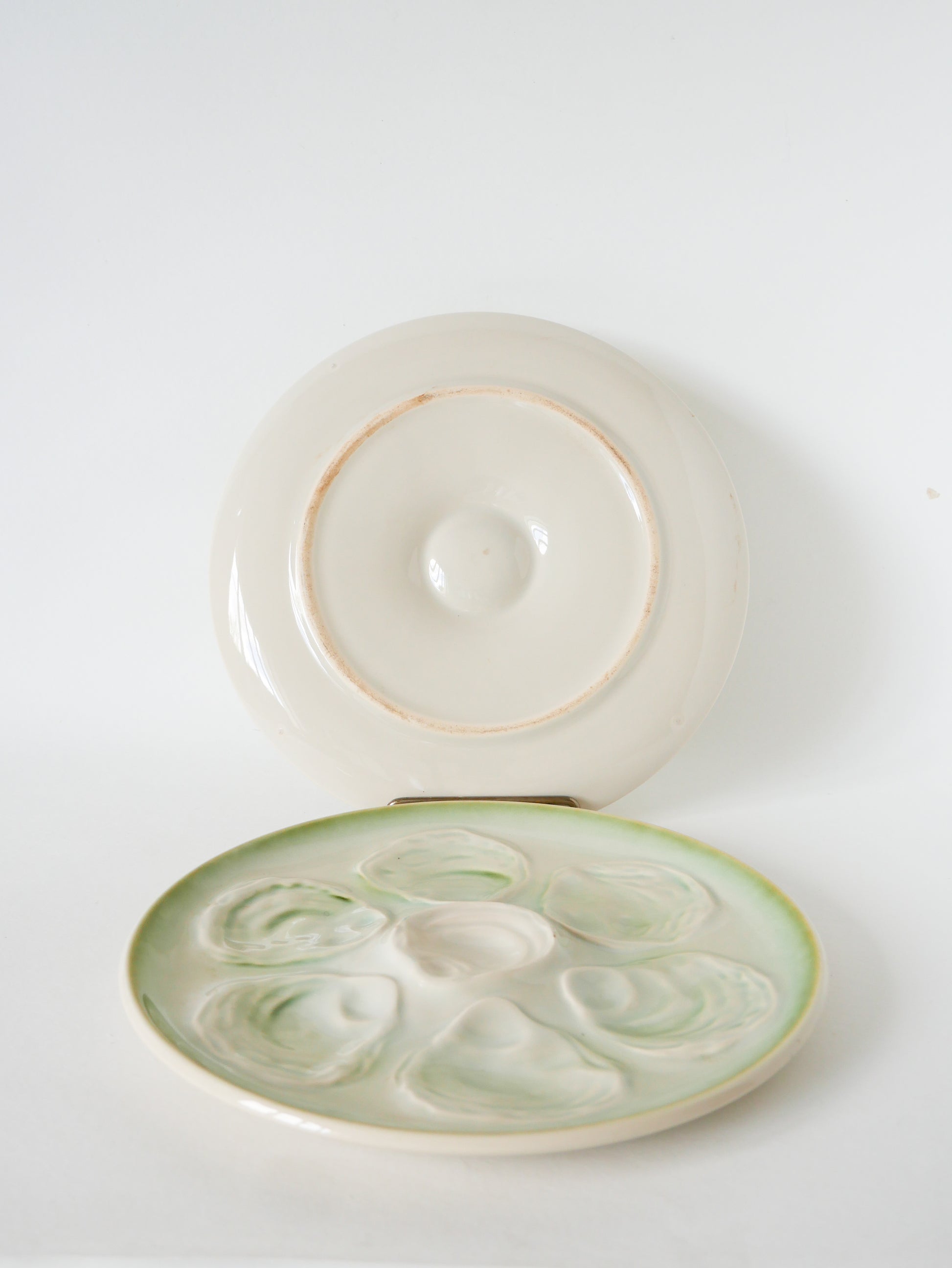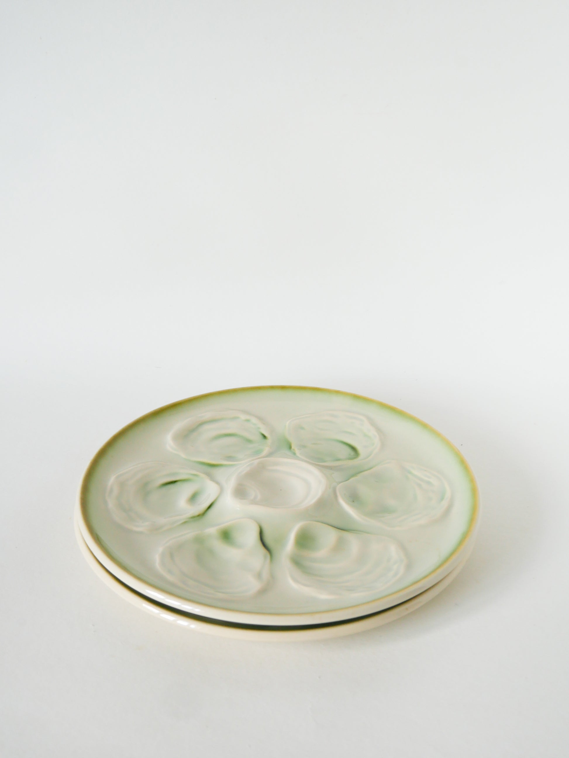 Paire d'assiettes à huîtres en barbotine, Bleu & Vert, 1960
