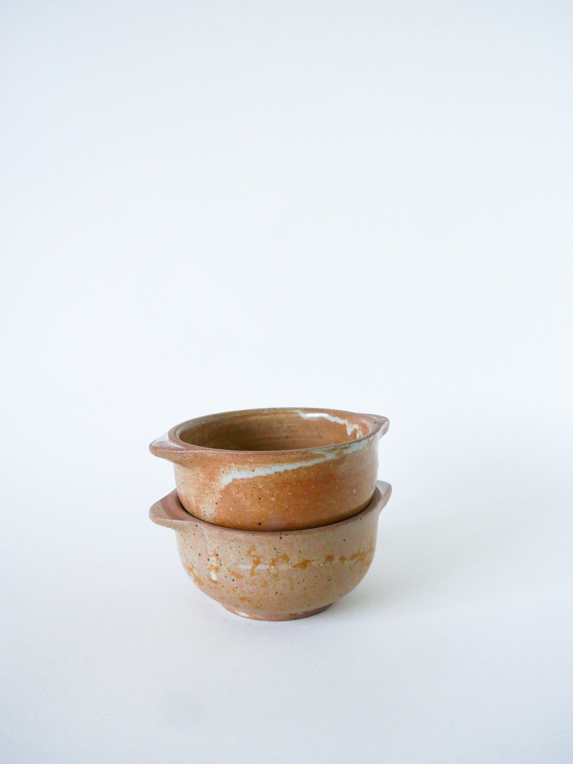 Jolie paire de bols à oreilles en grès vernissé, 1970. En très bon état, de rares traces du temps. Envoi rapide et soigné. Possibilité d'envois groupés - plus économique et plus écologique ! Dimensions : 16 X 12.5 X 6.5 cm.