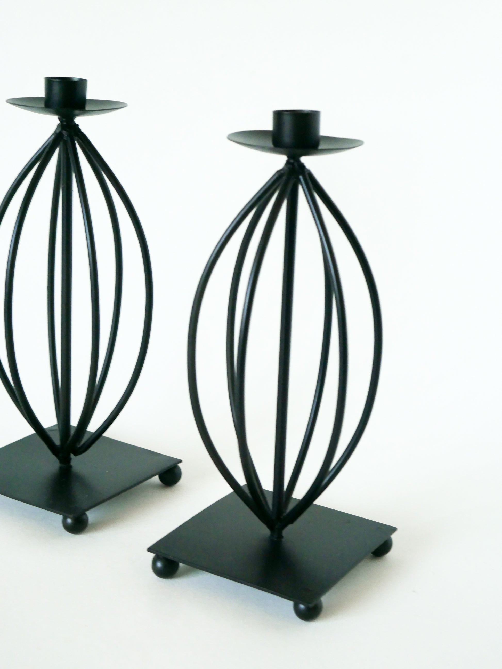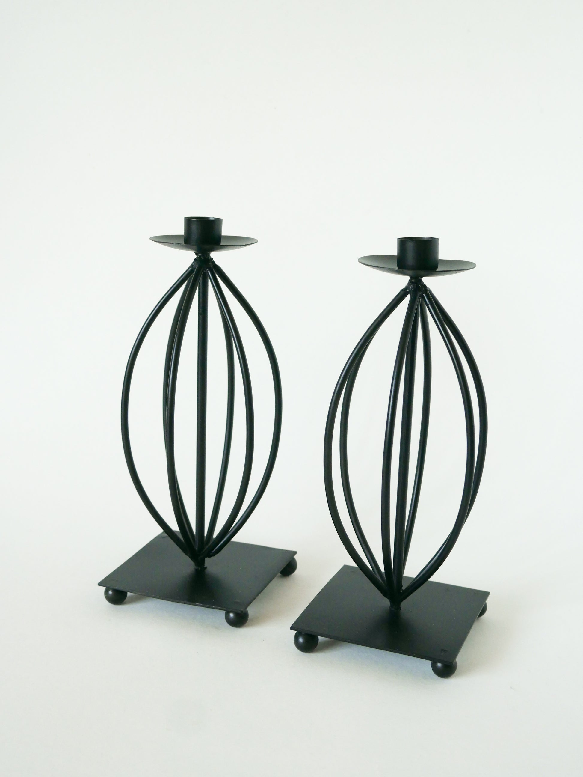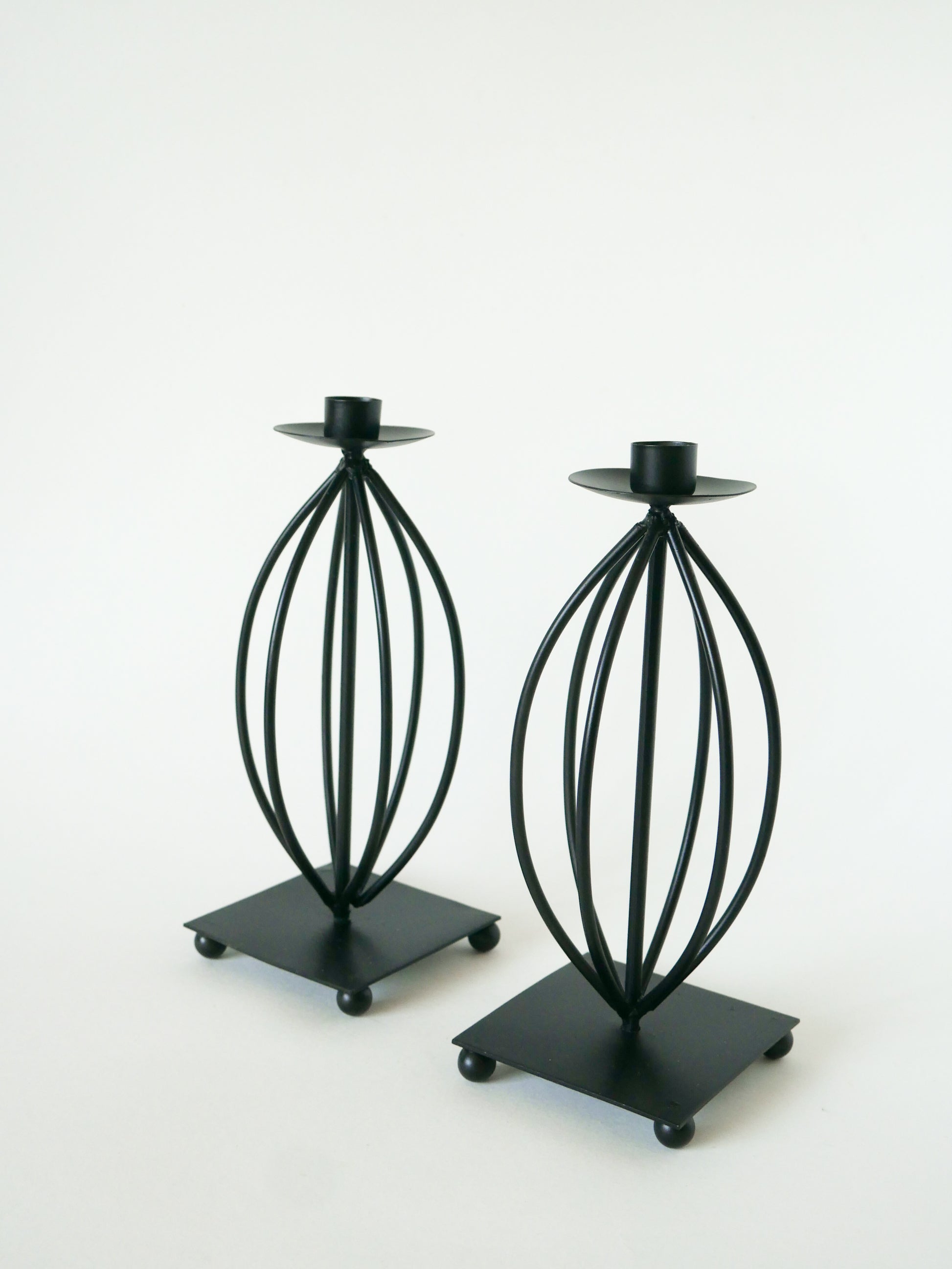 Paire de bougeoirs en fer forgé, Vintage - 24 X 10 cm