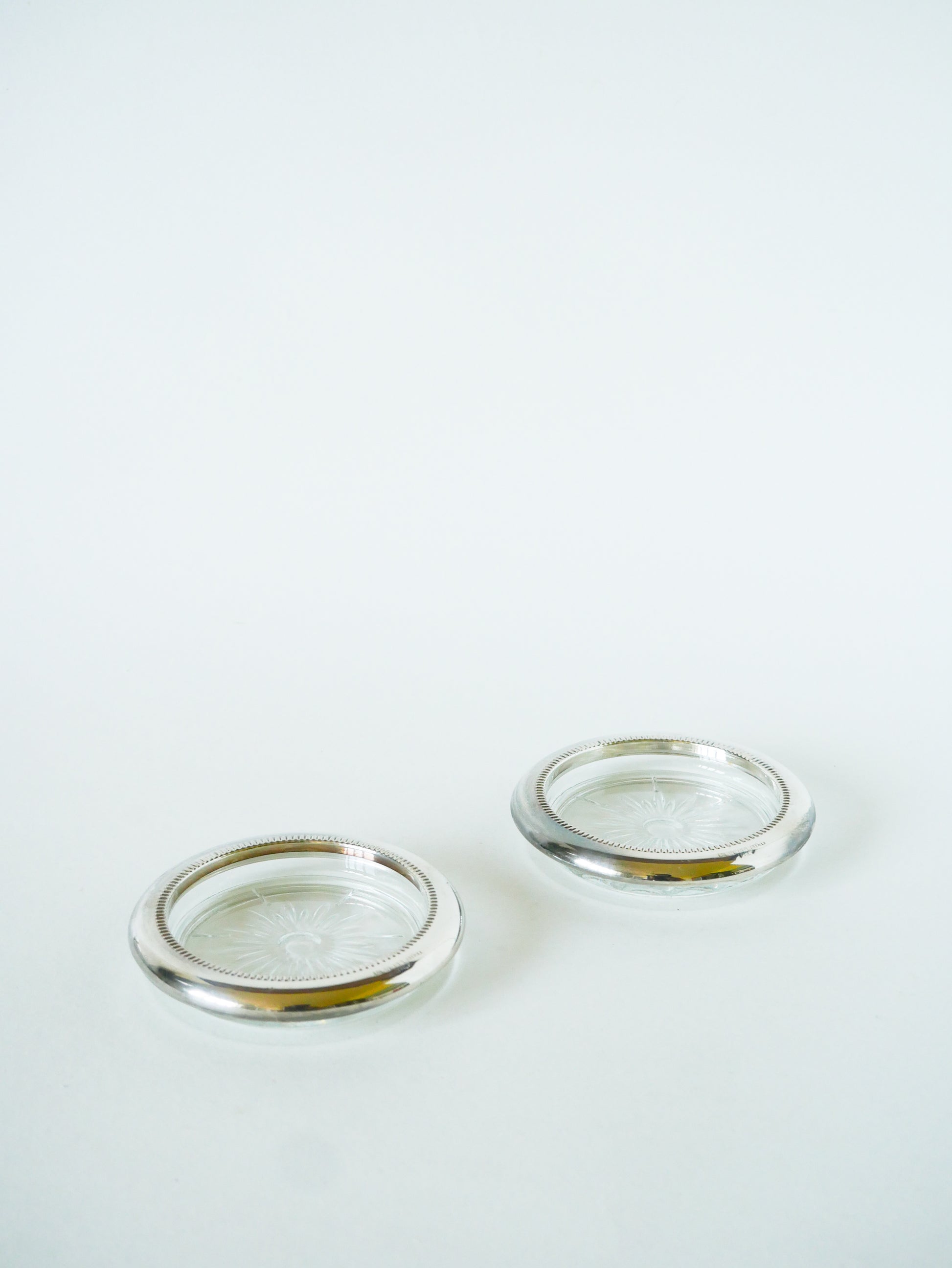 Paire de dessous de bouteille, en verre & chrome, 1950