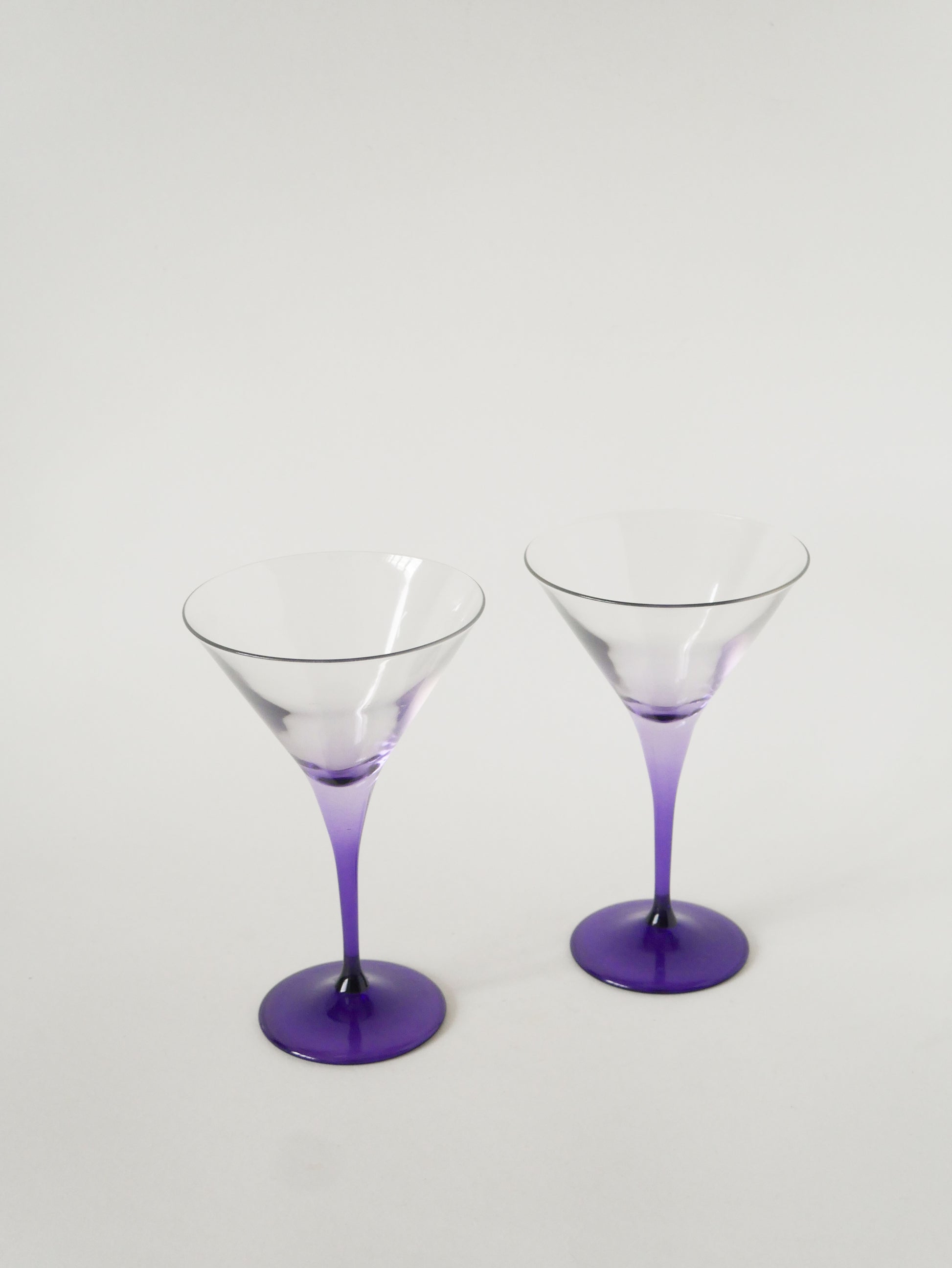 Paire de grands verres à cocktail / Martini, Violets, Made in Italy, 1970