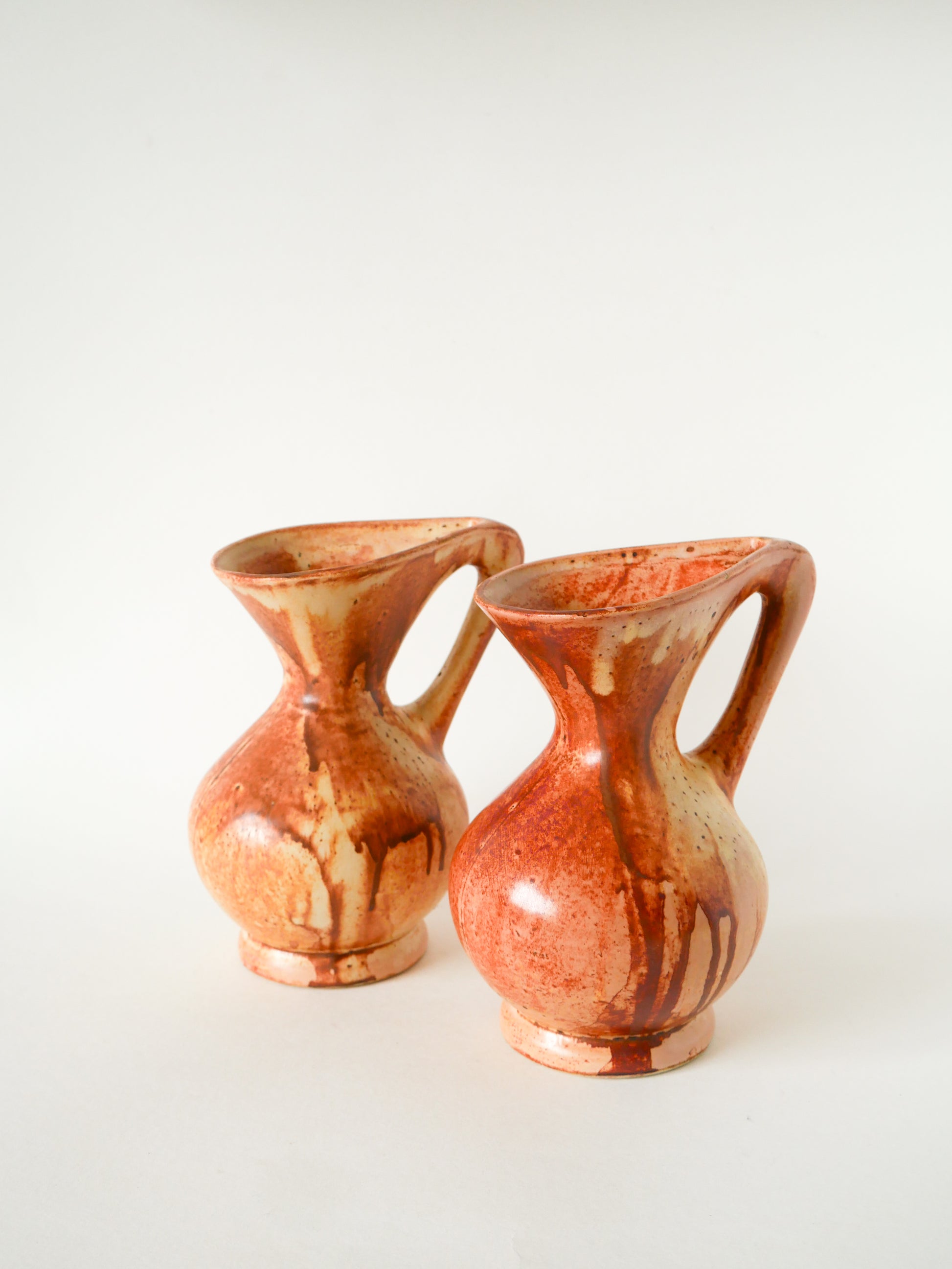 Paire de pichets en grès signés Vallauris, Graphiques, 1970