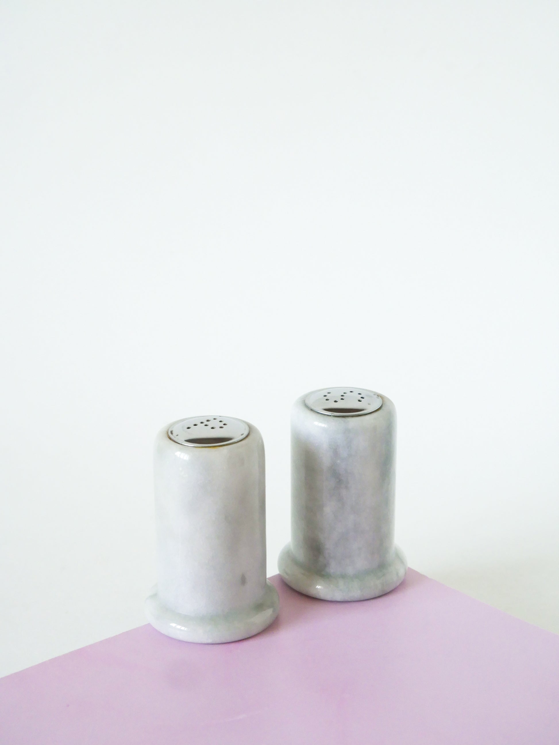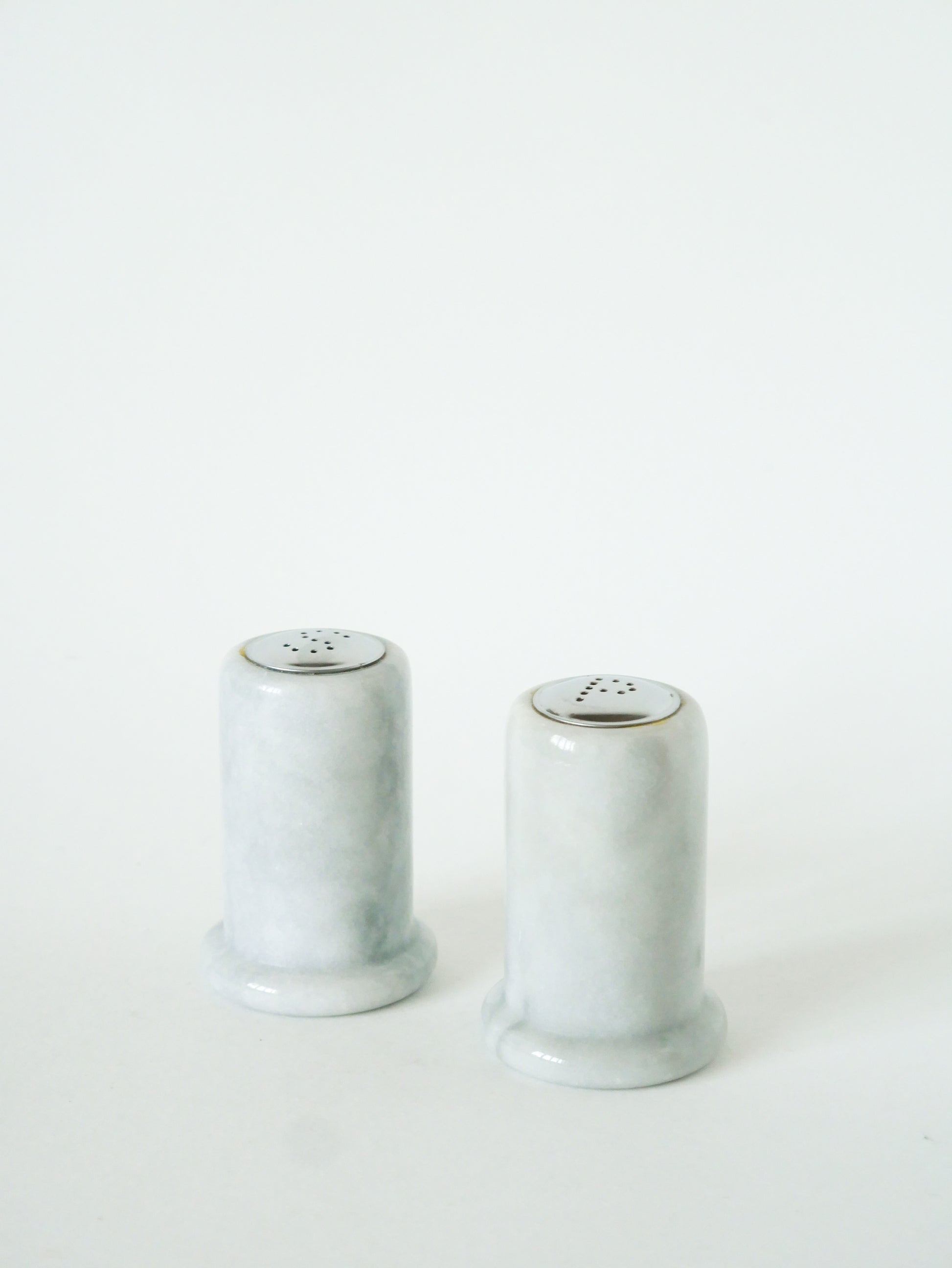 Jolie paire de sel et poivre en albâtre, Vintage. En très bon état, de rares traces du temps. Envoi rapide et soigné. Possibilité d'envois groupés - plus économique et plus écologique ! Dimensions : 8.5 X 5.5 cm.
