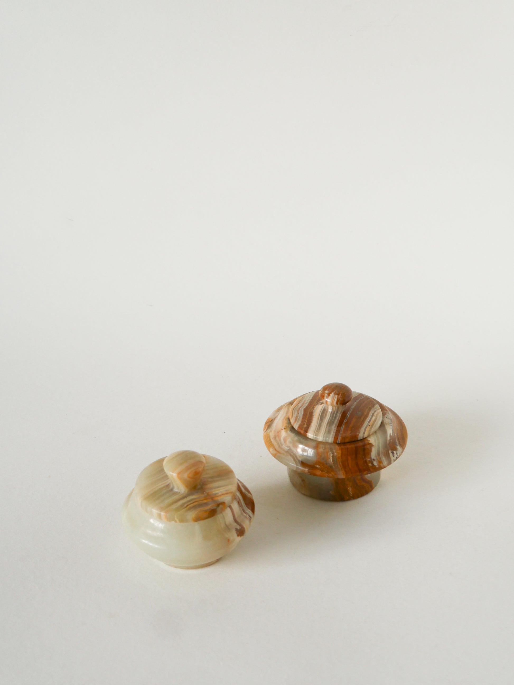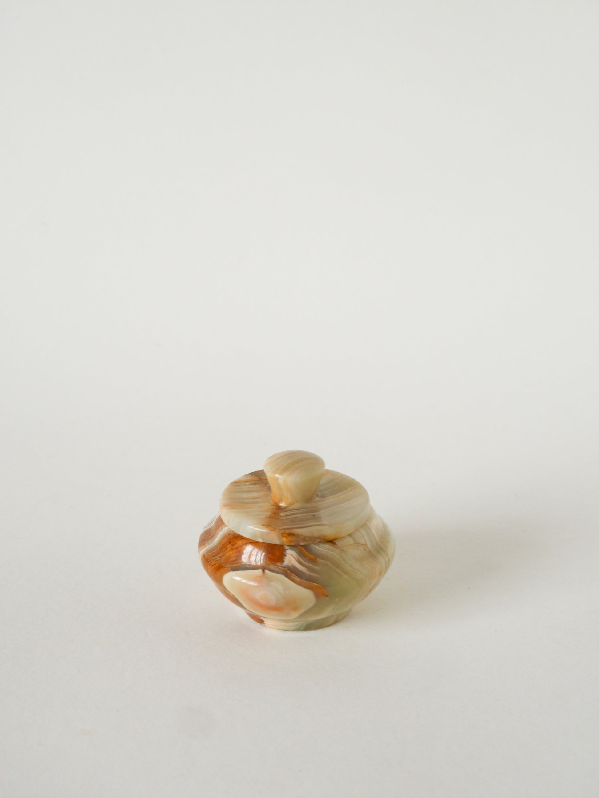 Petite boîte en Onyx, forme Ronde, Beige, Design, 1970 - 8 X 6 cm
