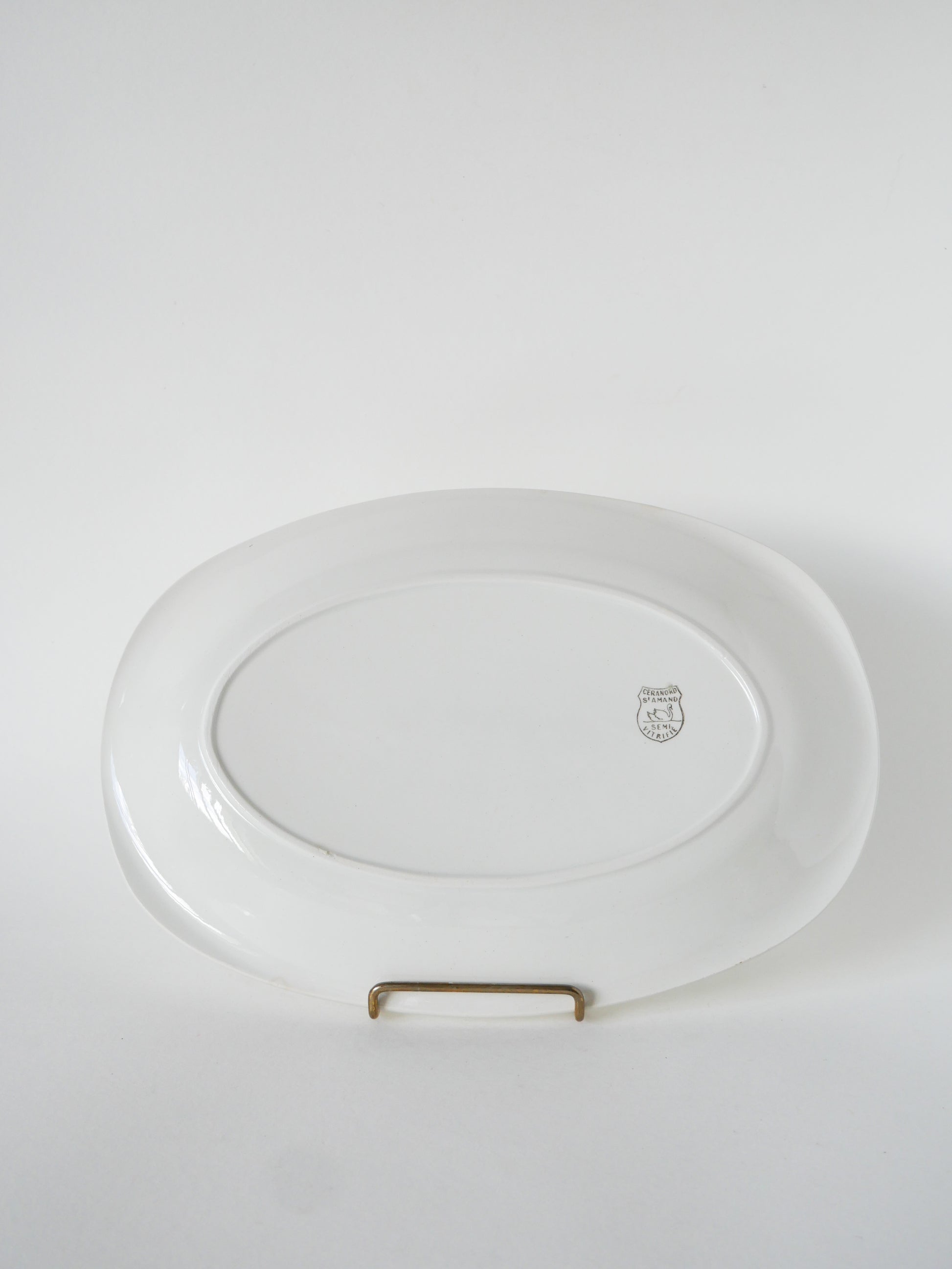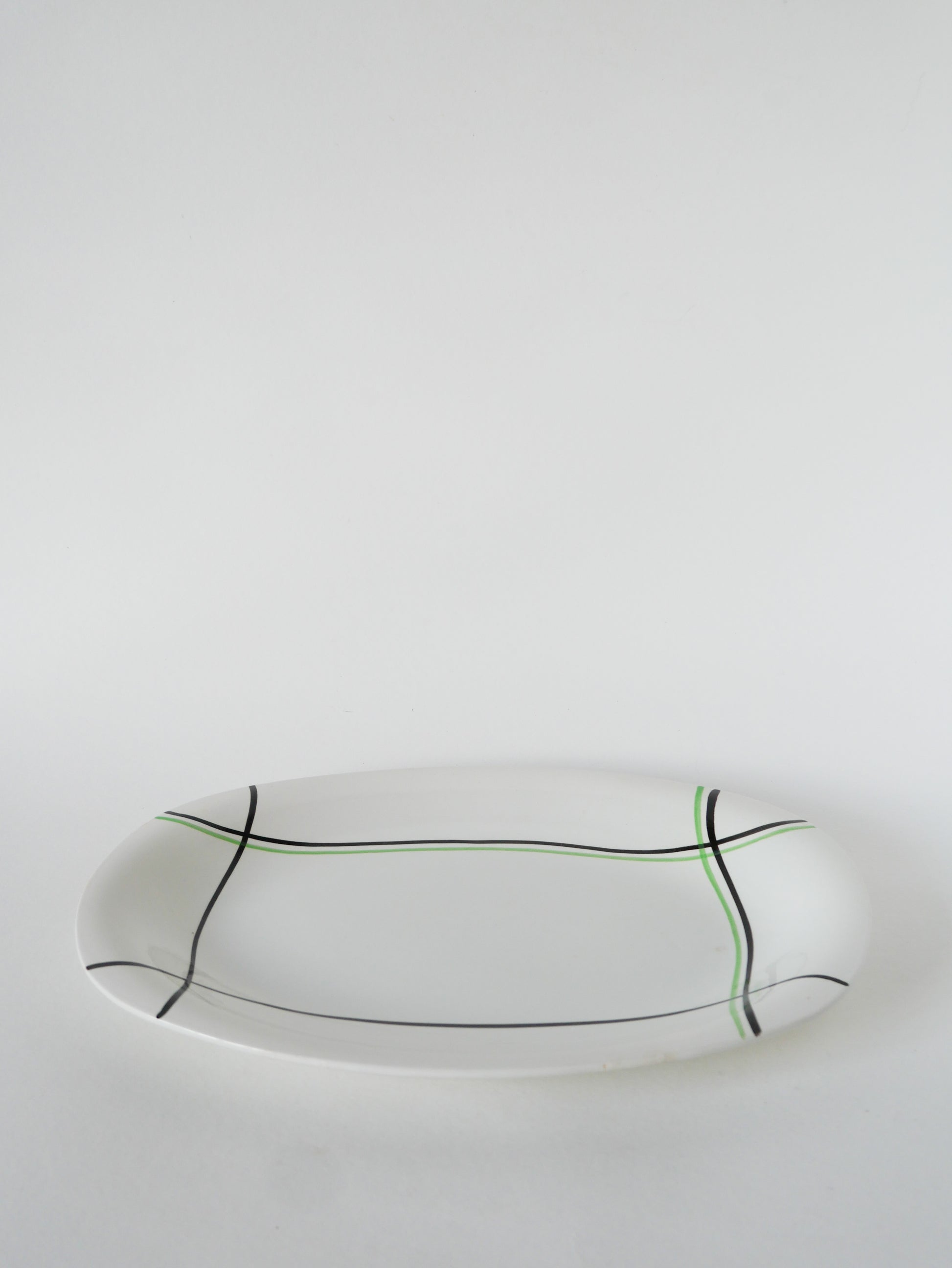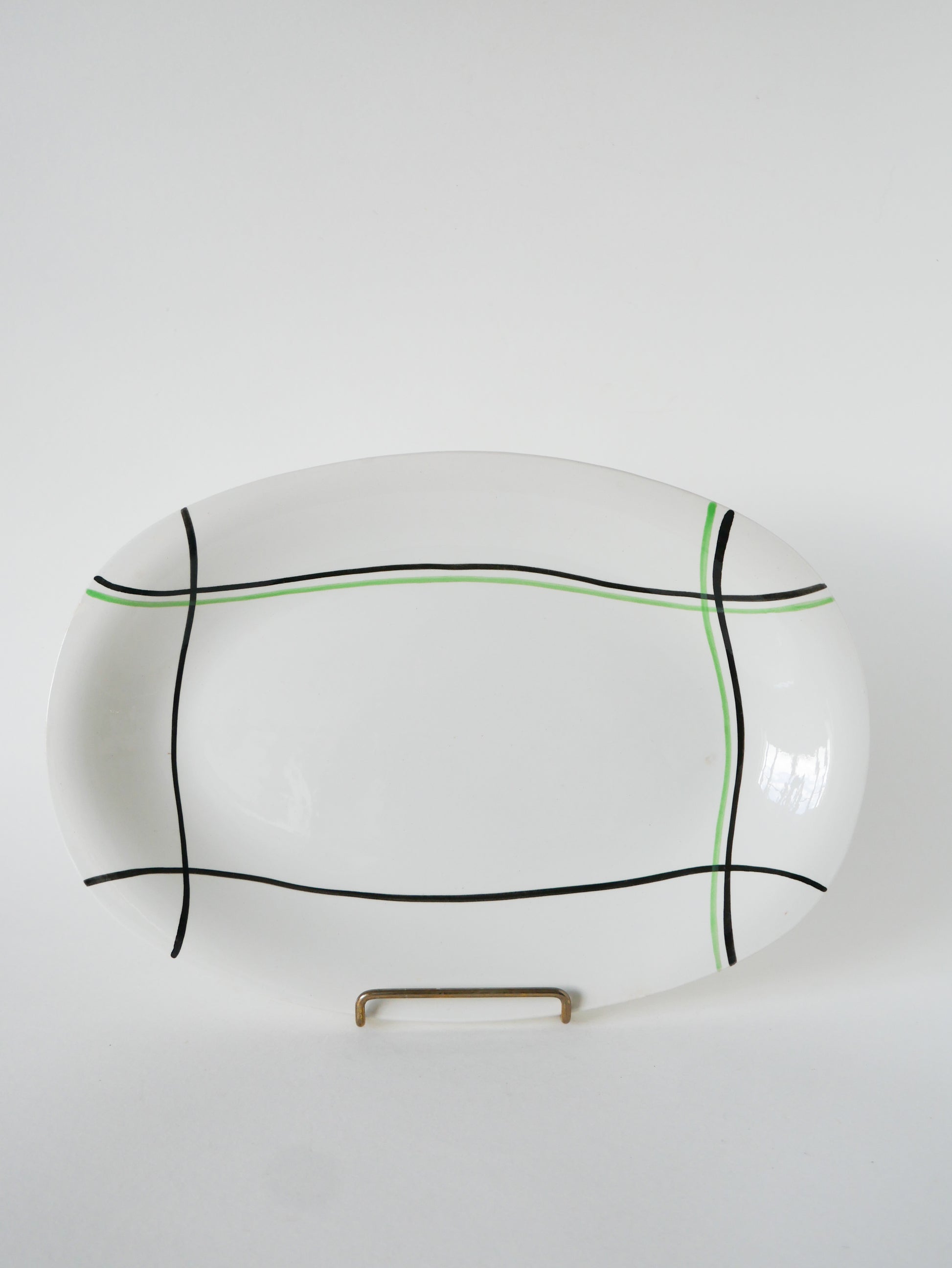 Plat oval, St Amand, peint à la main, modèle Liserés Vert et Noir, 1960