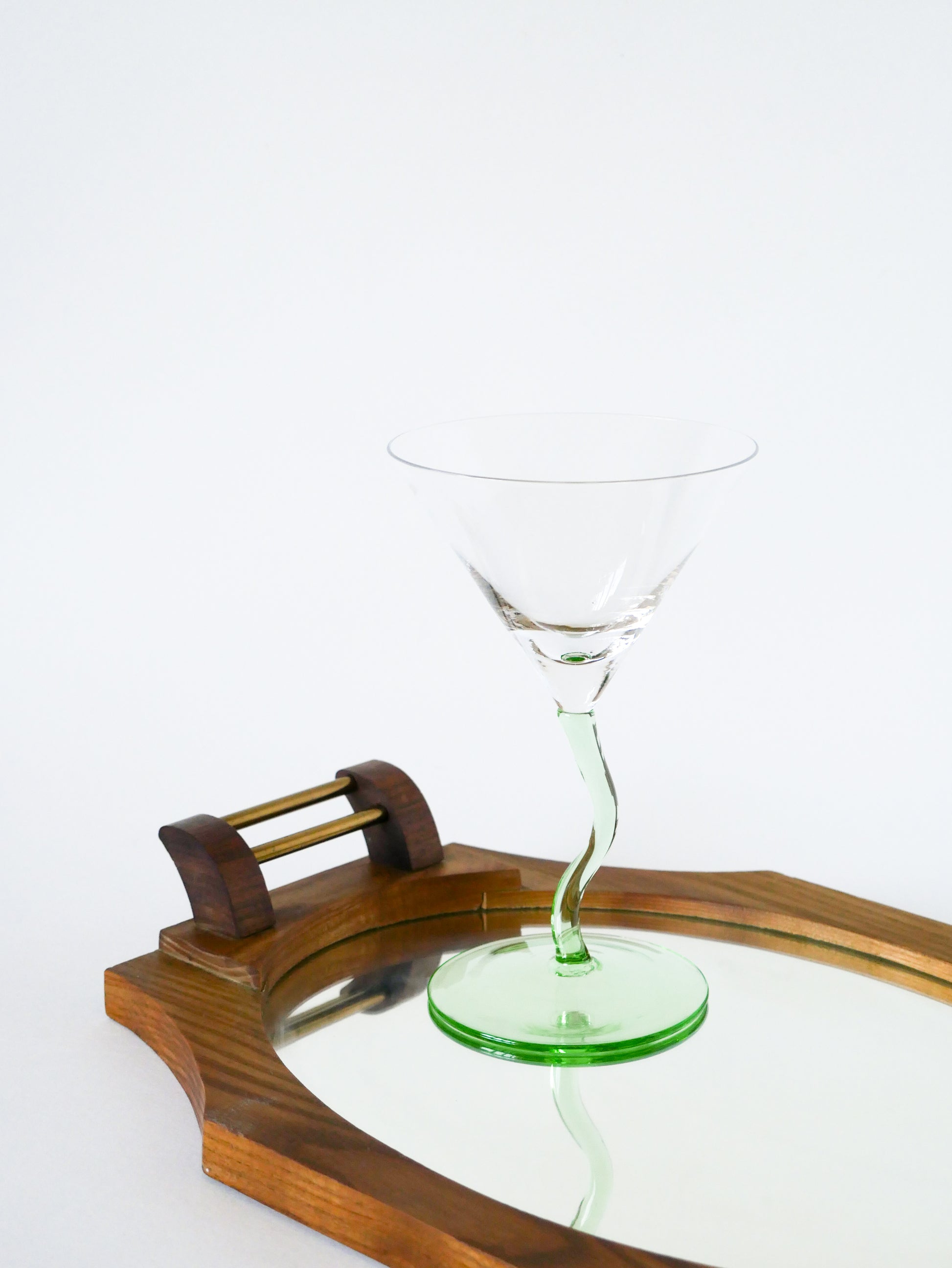Joli plateau miroir en bois de hêtre, octogonal, poignées en laiton, 1950. En très bon état, de rares traces du temps. Envoi rapide et soigné. Possibilité d'envois groupés - plus économique et plus écologique ! Dimensions : 38 X 27 cm .