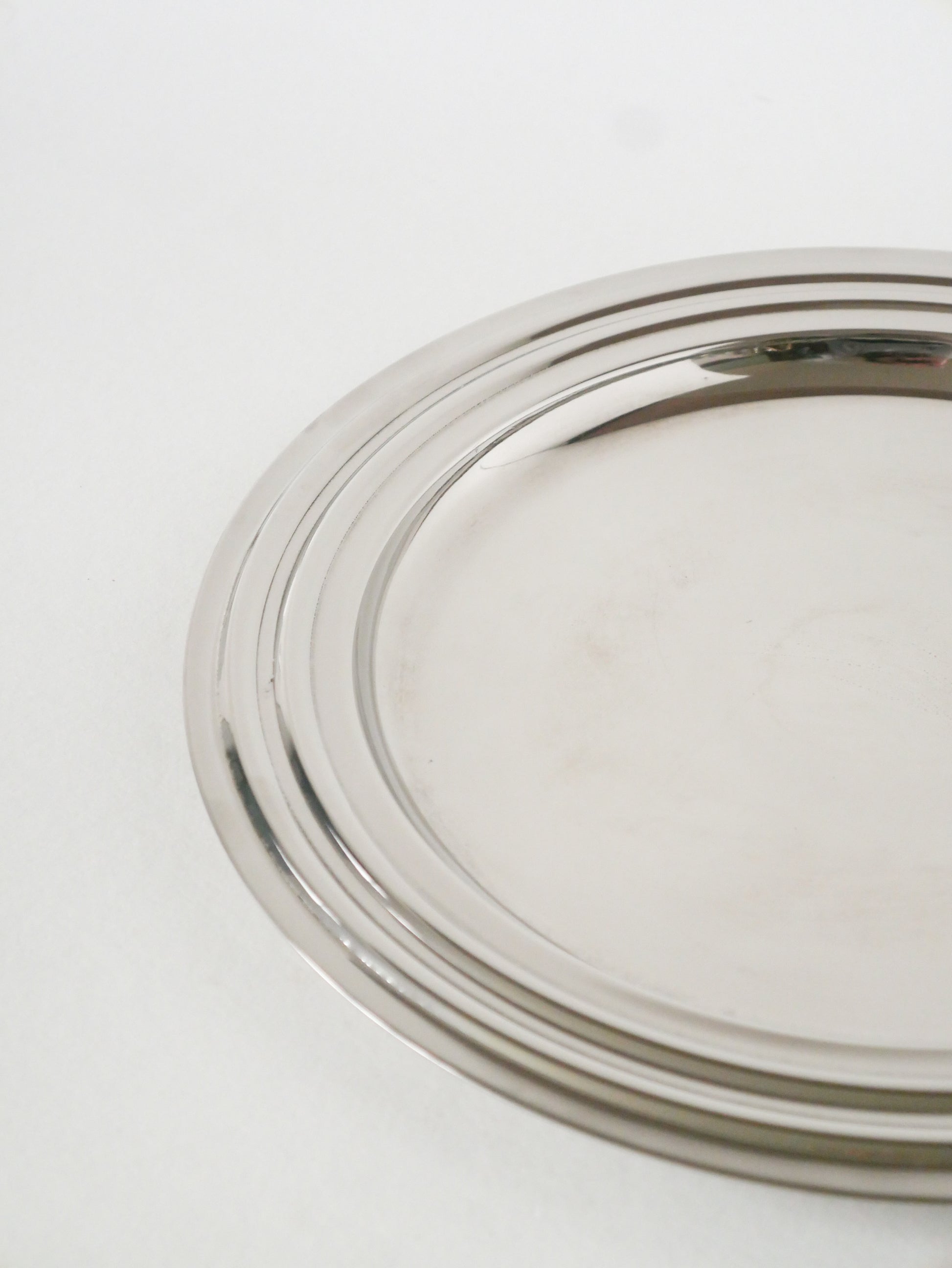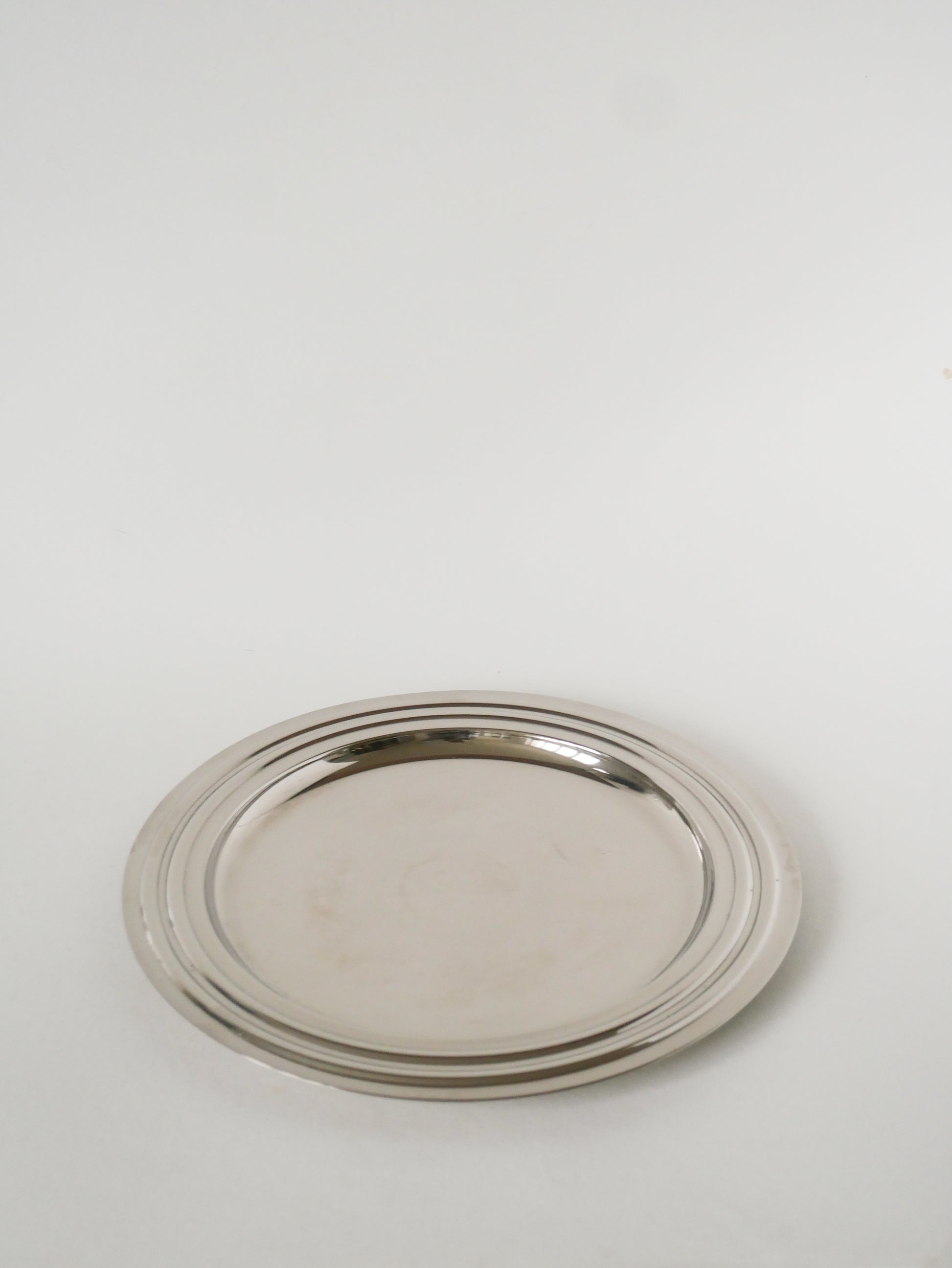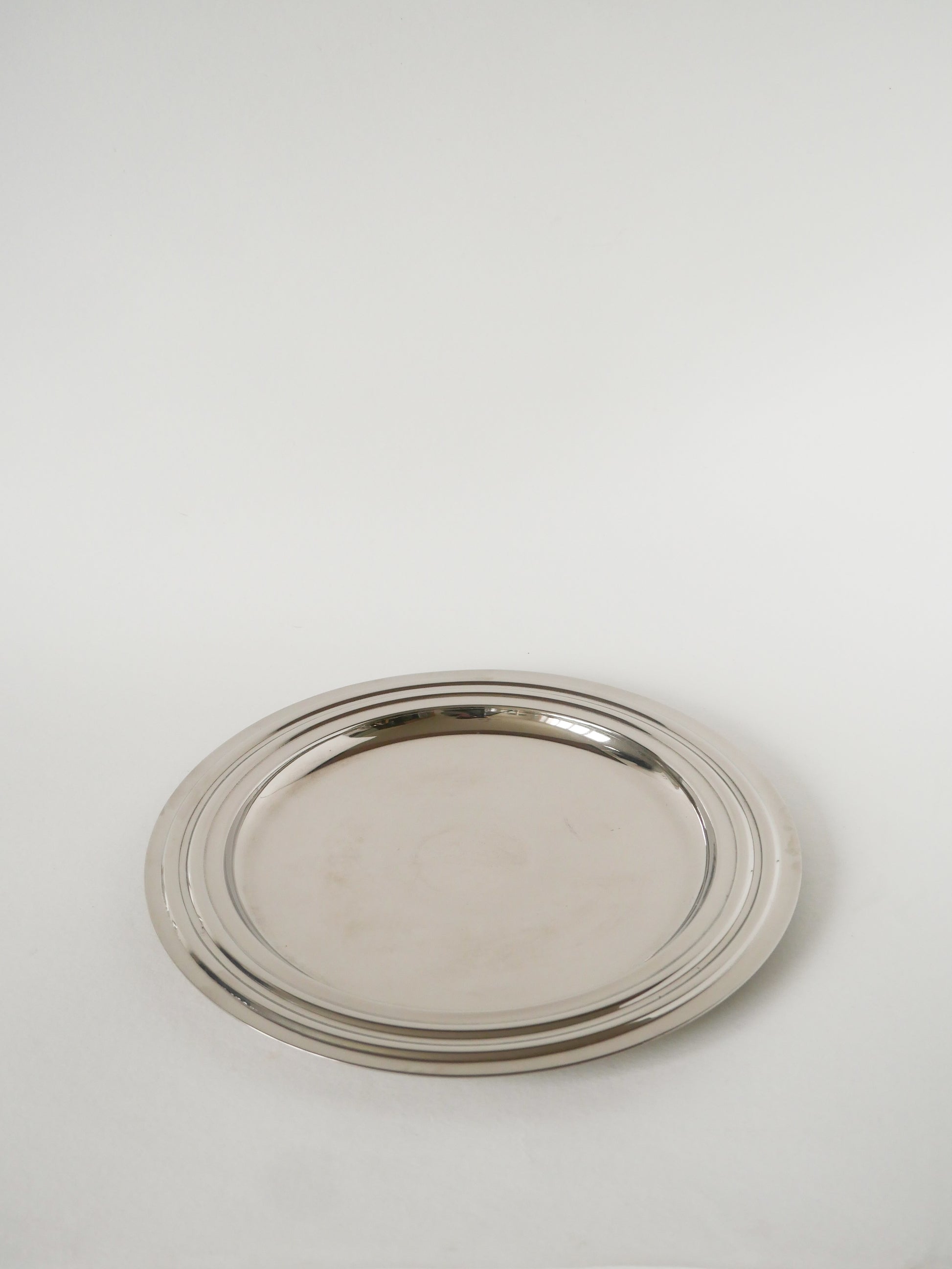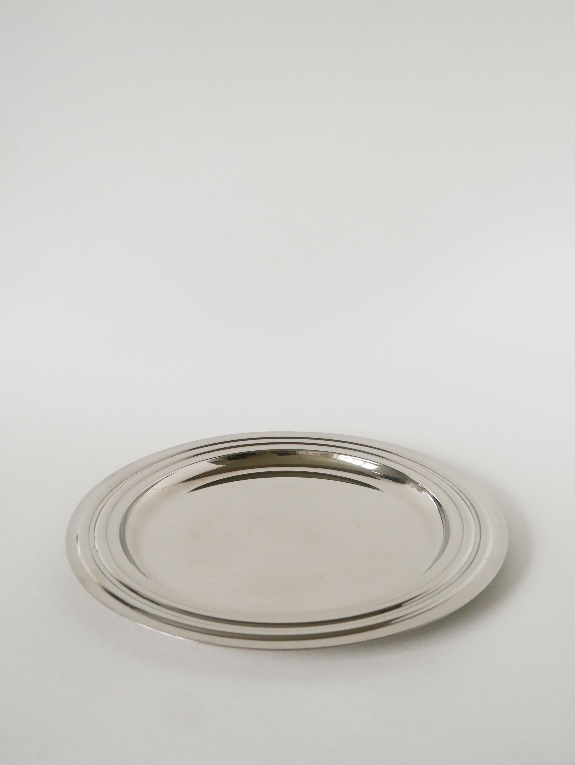 Plateau rond en métal argenté, Design, 1970