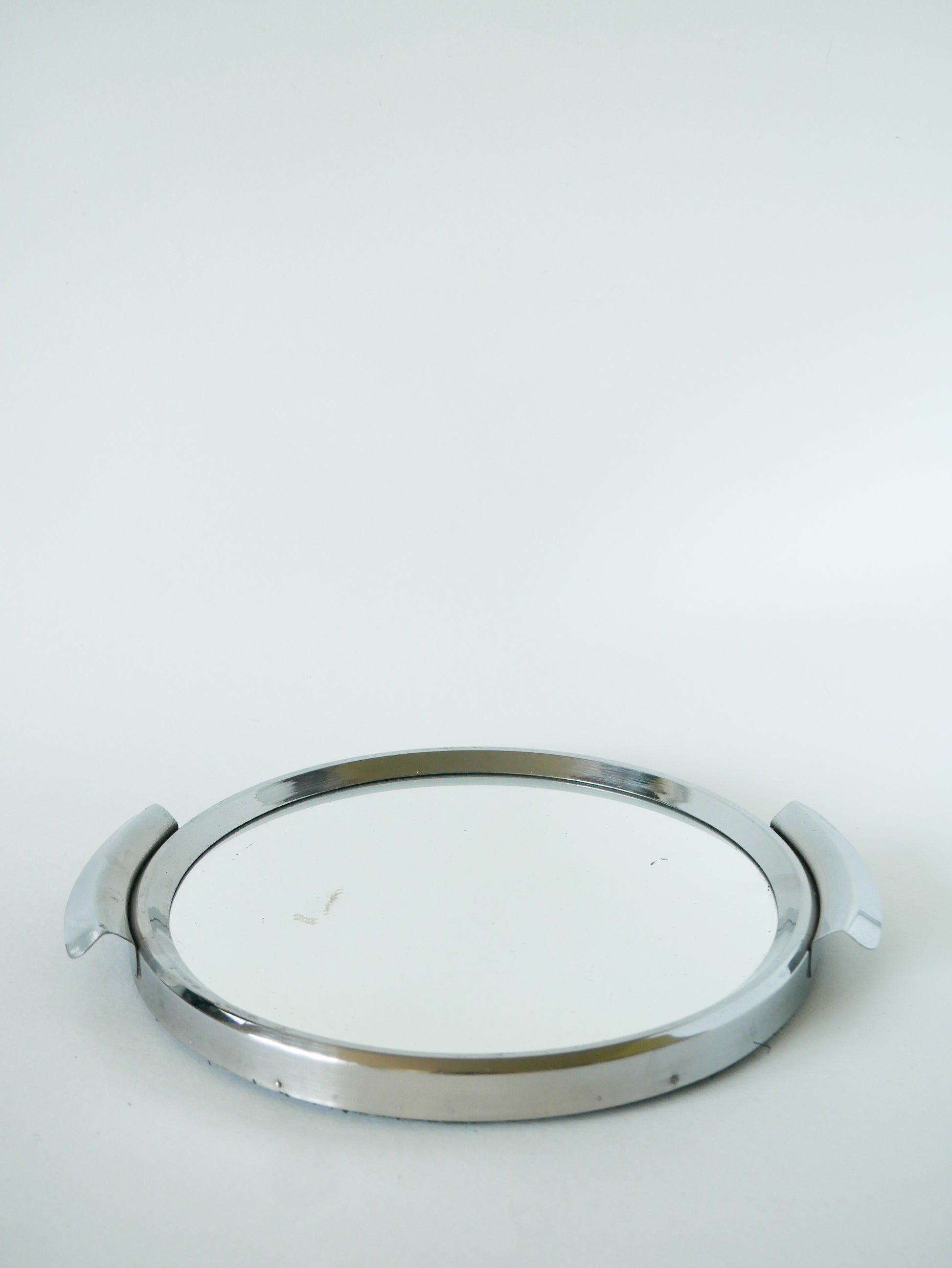 Plateau rond miroir en chrome, Art Déco, 1930 - 25 cm