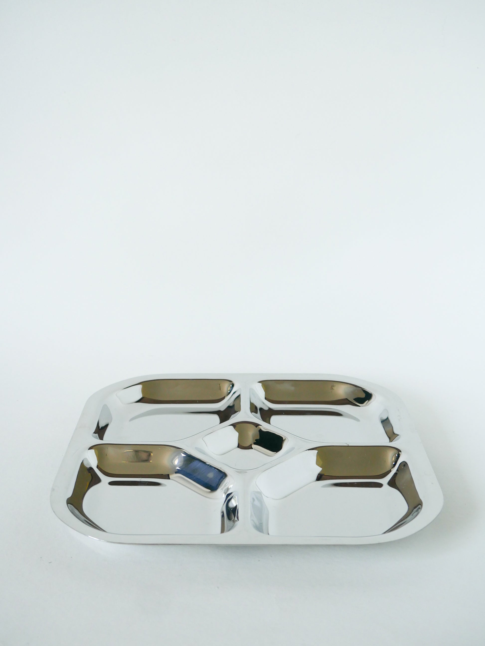 Présentoir à compartiments en inox, Carré, Design, 1970