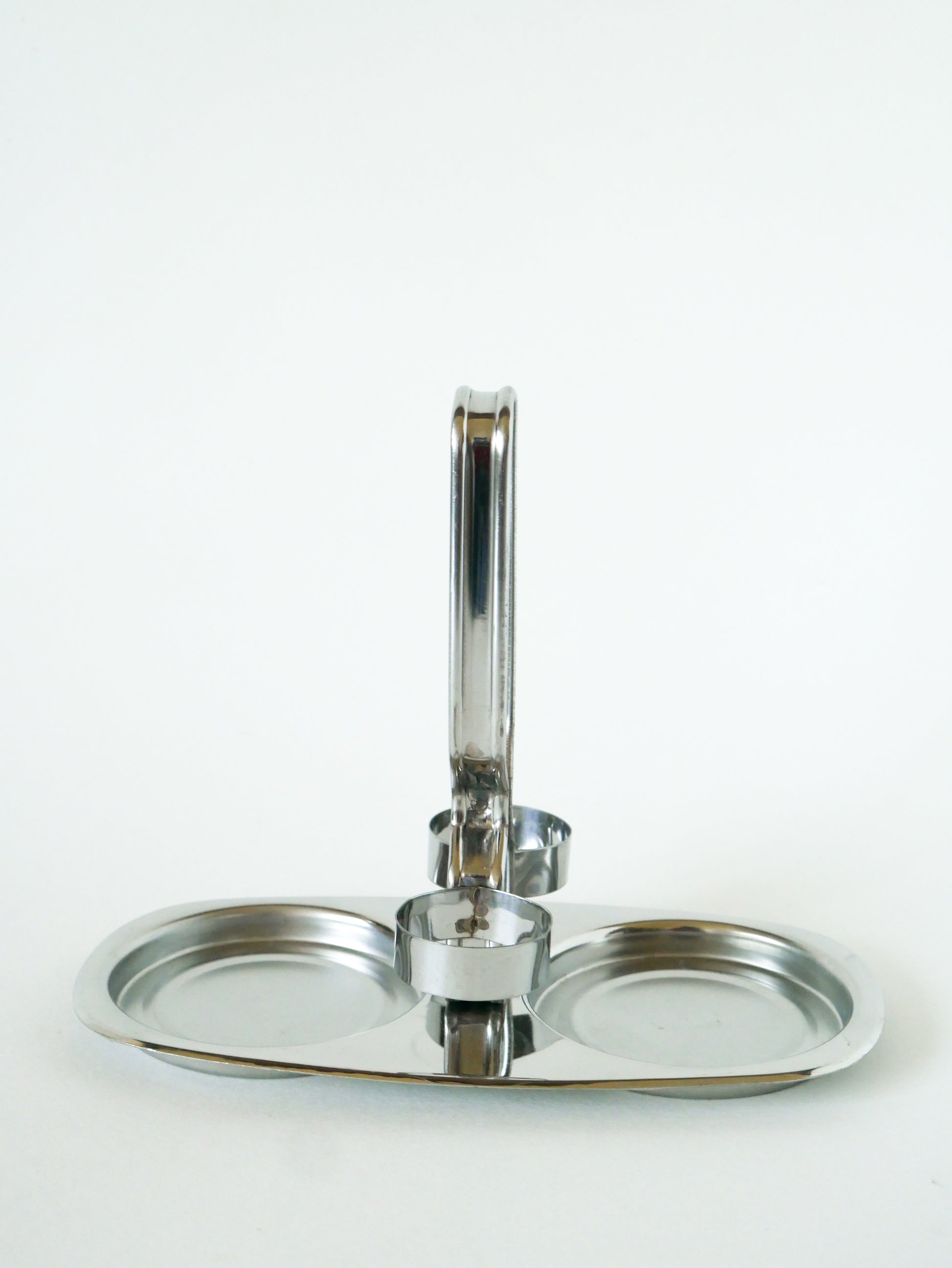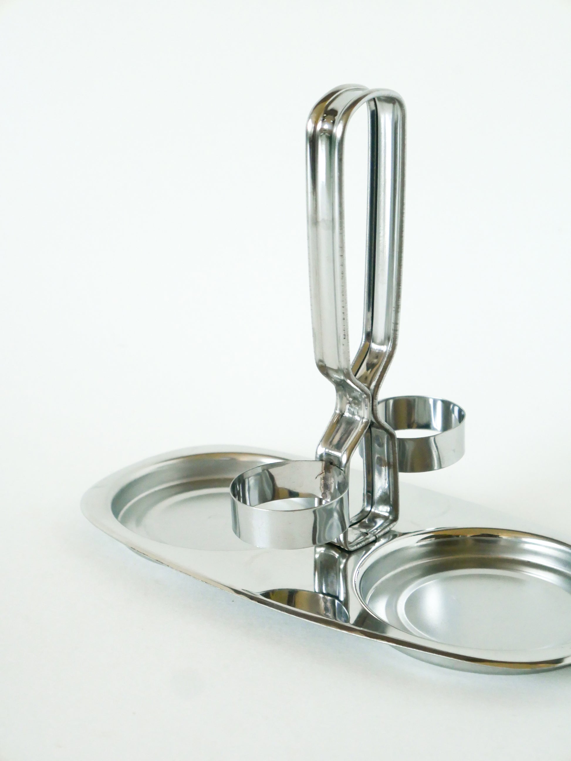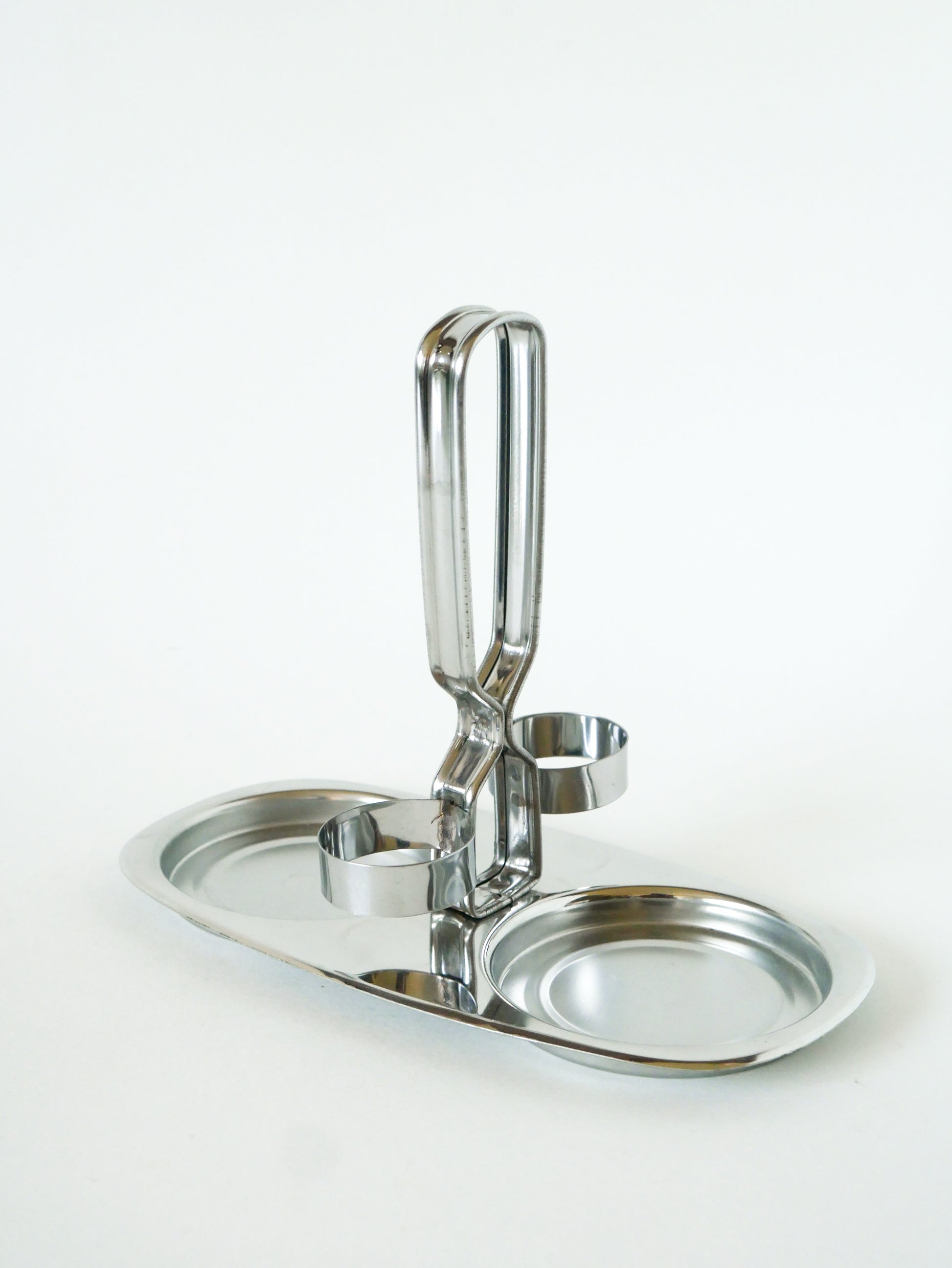 Joli présentoir petit-déjeuner à œufs, 1970. En très bon état, de rares traces du temps. Envoi rapide et soigné. Possibilité d'envois groupés - plus économique et plus écologique ! Dimensions : 23 X 20 X 13 cm.