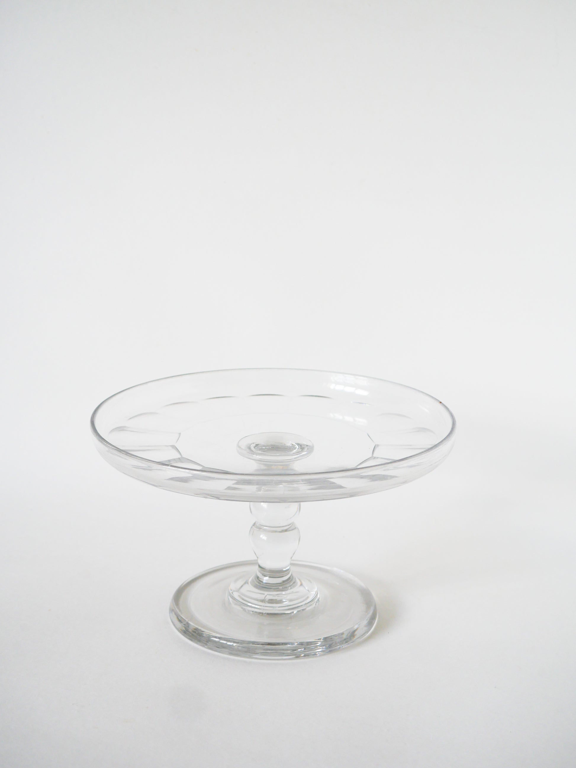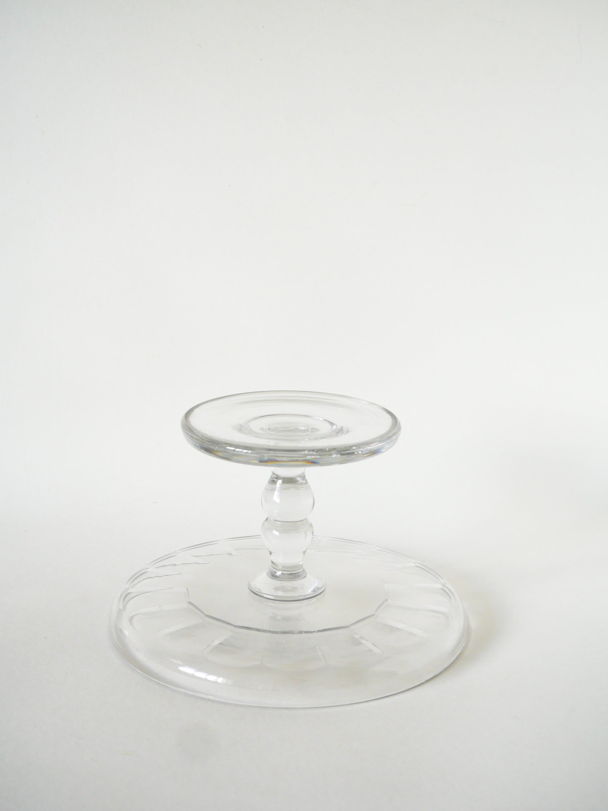 Joli présentoir sur pieds en verre, 1950. En très bon état, de rares traces du temps. Envoi rapide et soigné. Possibilité d'envois groupés - plus économique et plus écologique ! Dimensions : 20 X 12 cm.