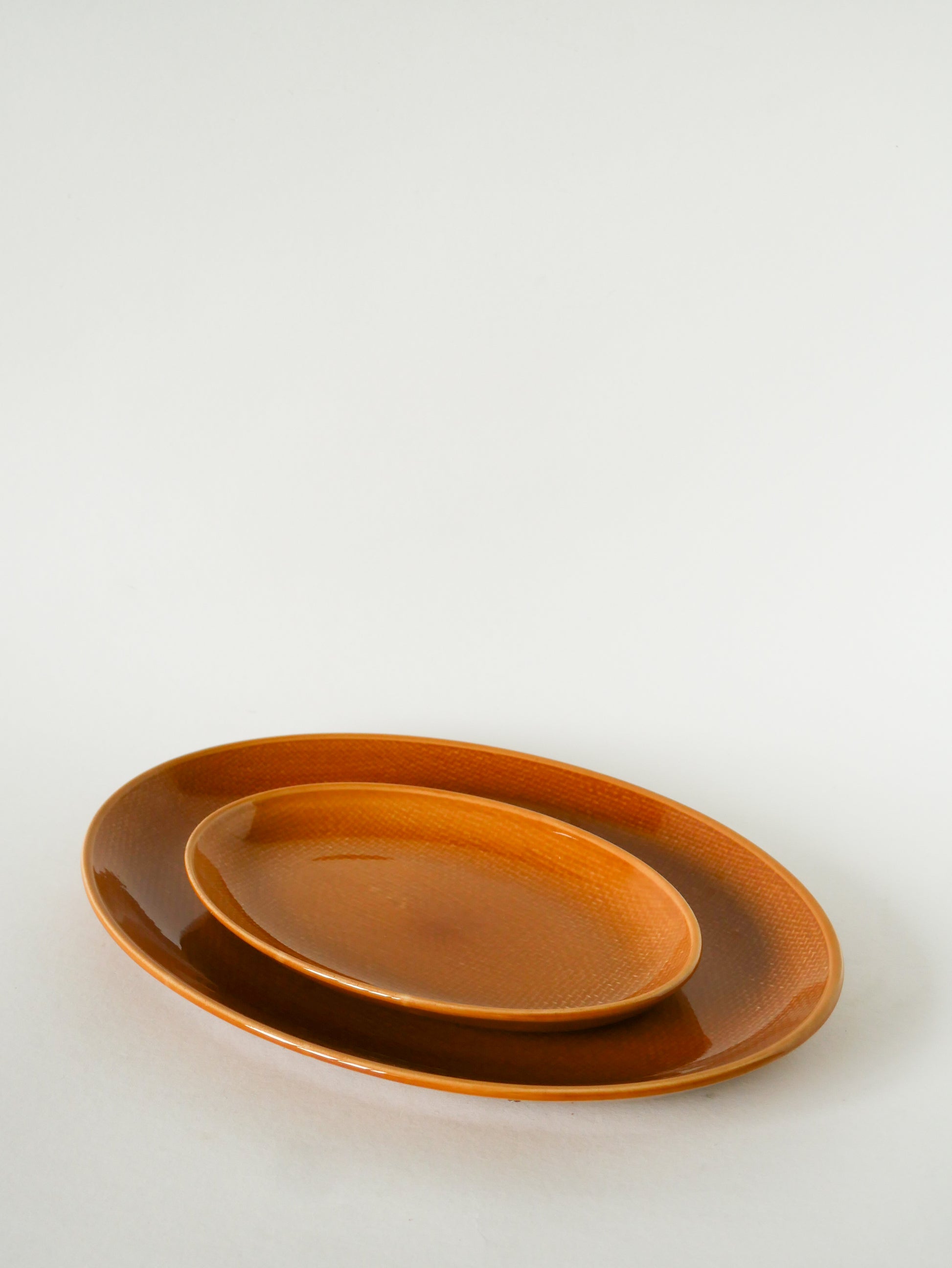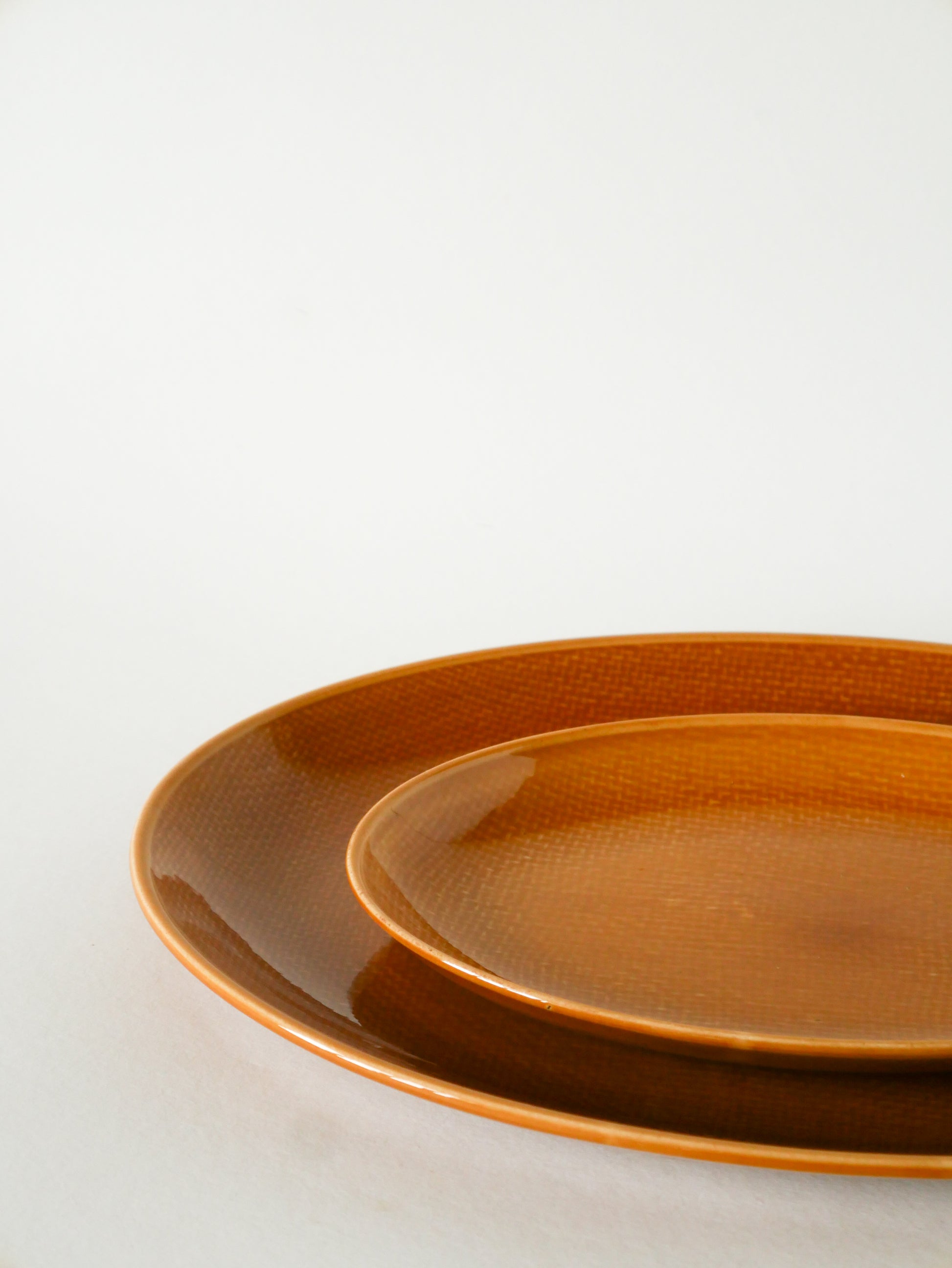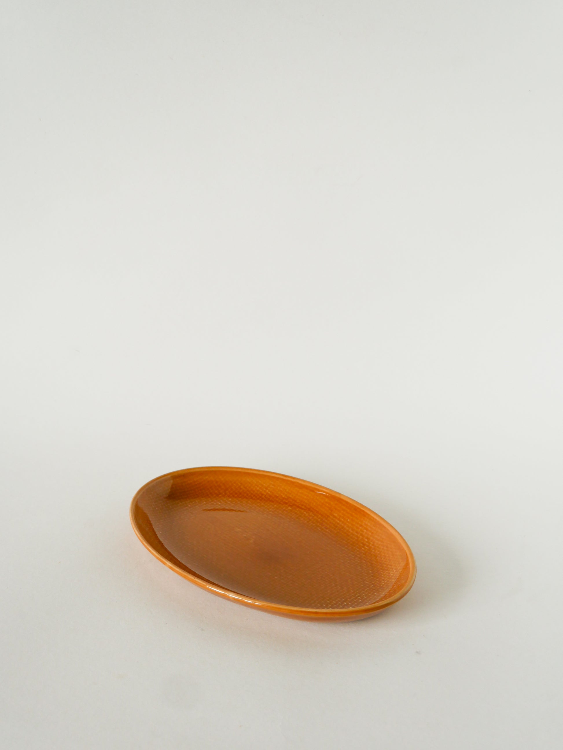 Ravier oval, effet tissé, Jaune Moutarde, Salins, 1950