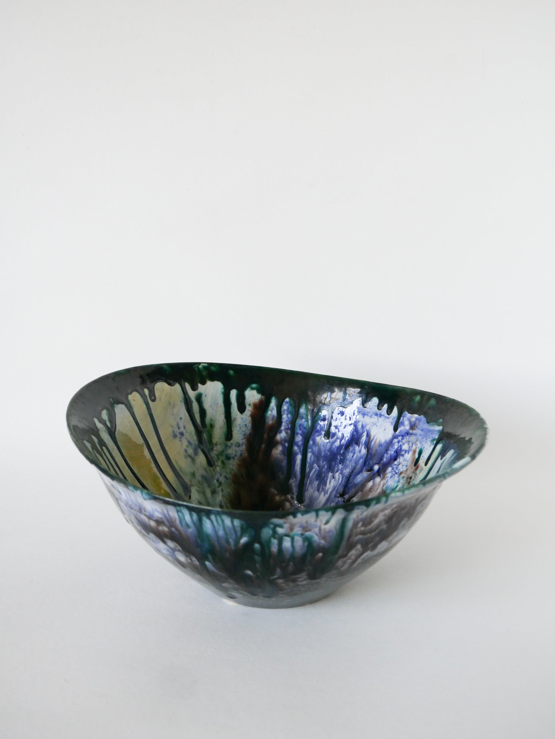 Joli saladier en céramique du Morvan, 1970. En très bon état, de rares traces du temps. Envoi rapide et soigné. Possibilité d'envois groupés - plus économique et plus écologique ! Dimensions : 26 X 22 X 10 cm.