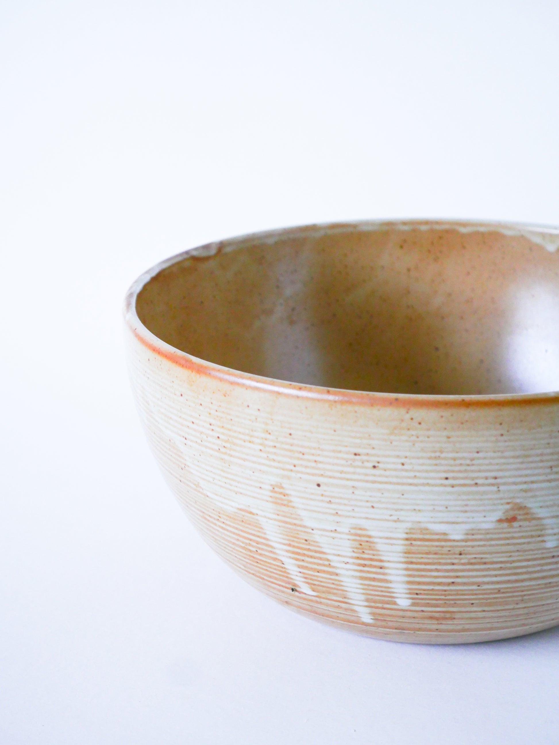 Joli saladier en grès, 1970. En très bon état, de rares traces du temps. Envoi rapide et soigné. Possibilité d'envois groupés - plus économique et plus écologique ! Dimensions : 25 X 12 cm.