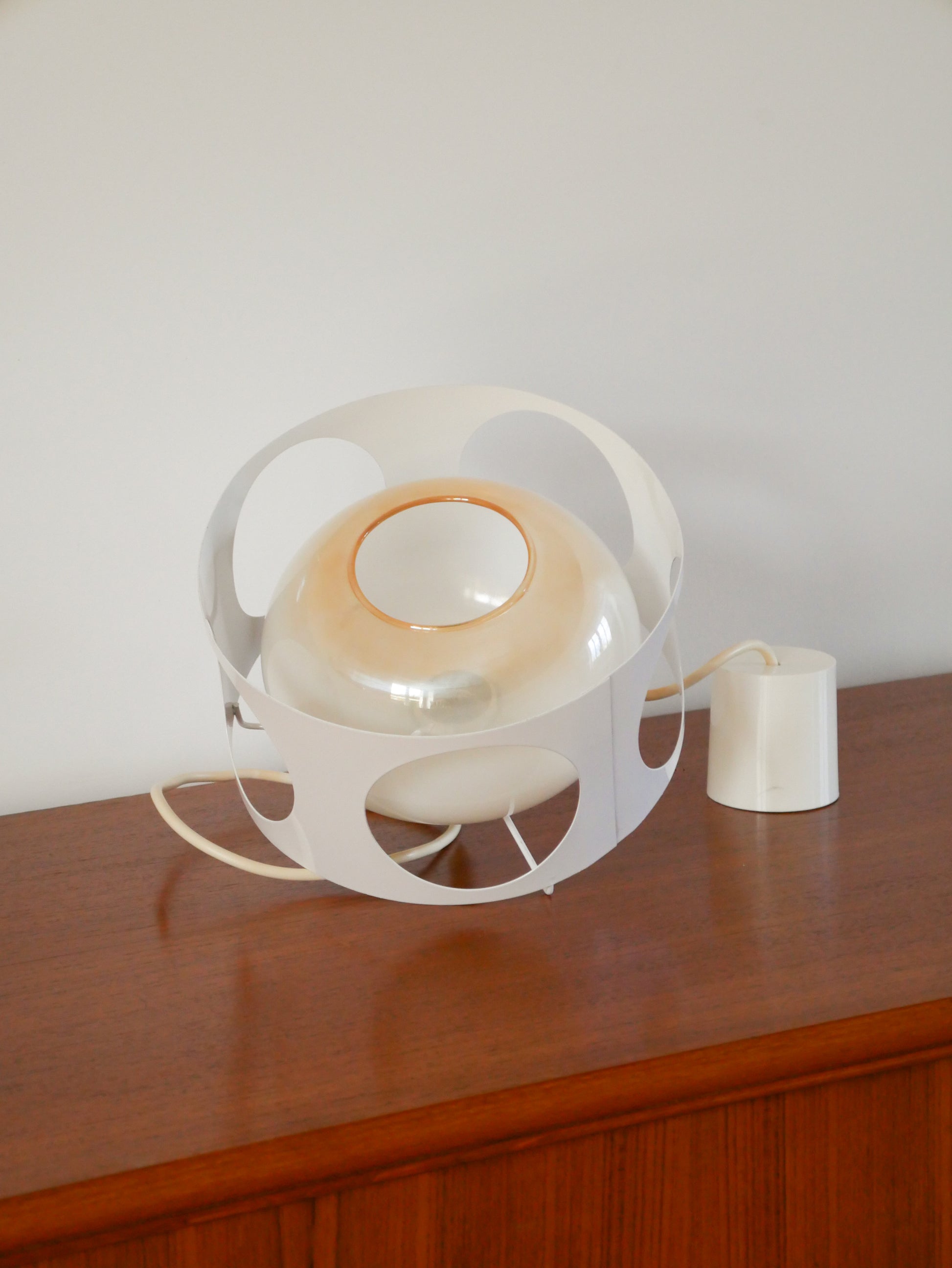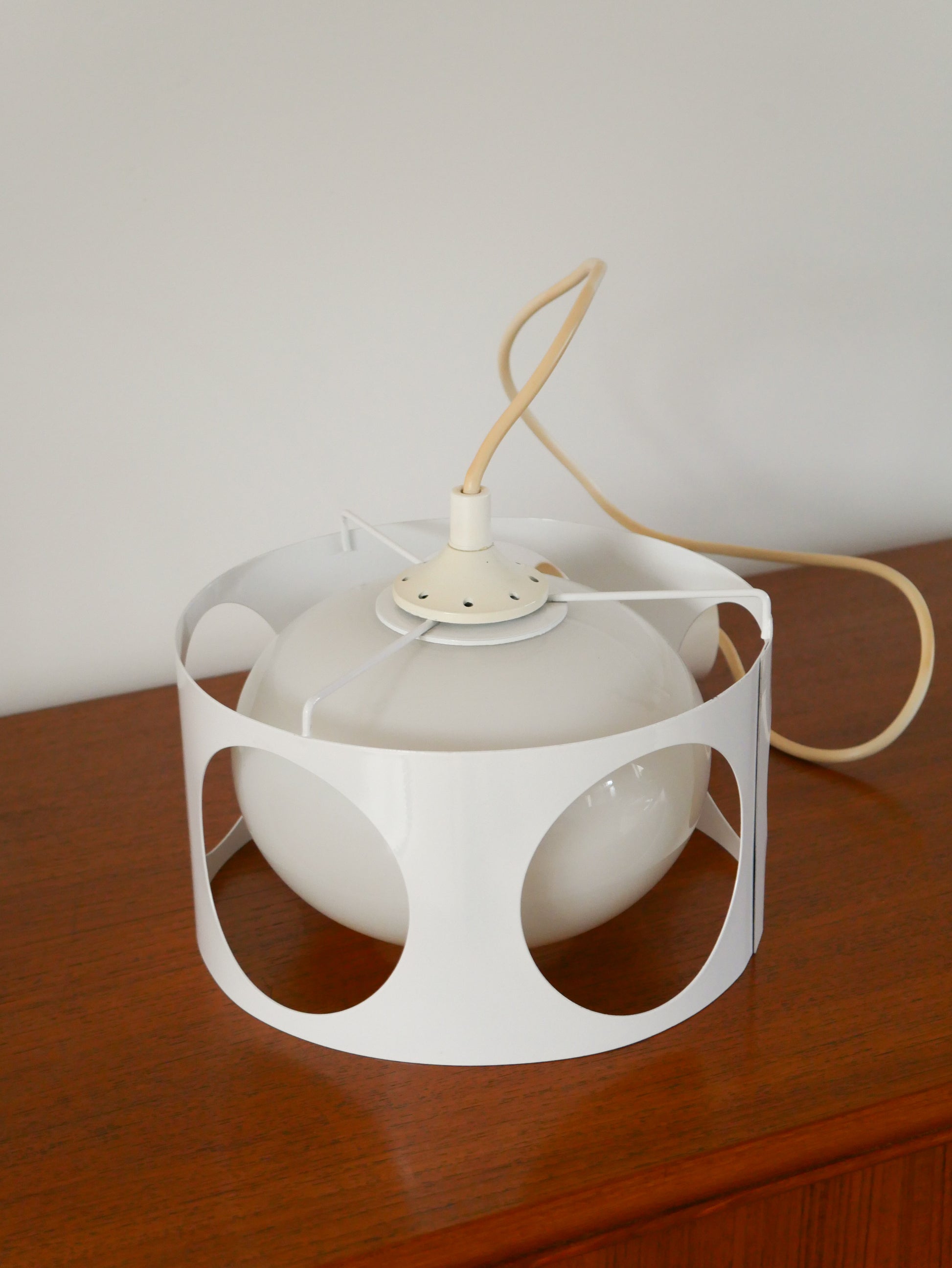 Suspension en métal laqué et opaline, UFO par Lita, Blanc, 1970