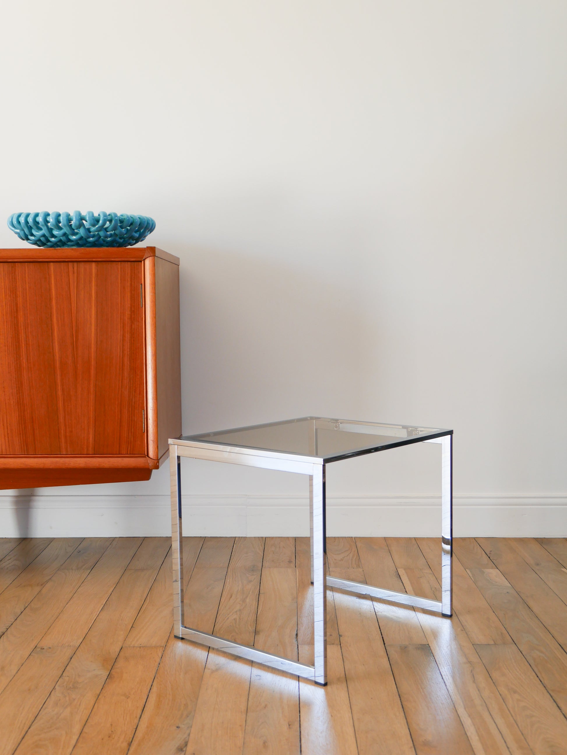 Table d'appoint en chrome et verre fumé, Design, 1970