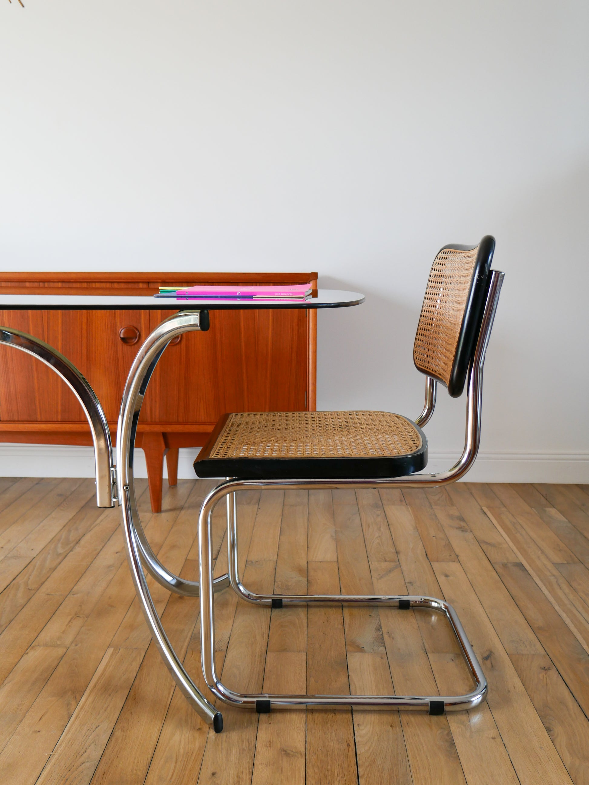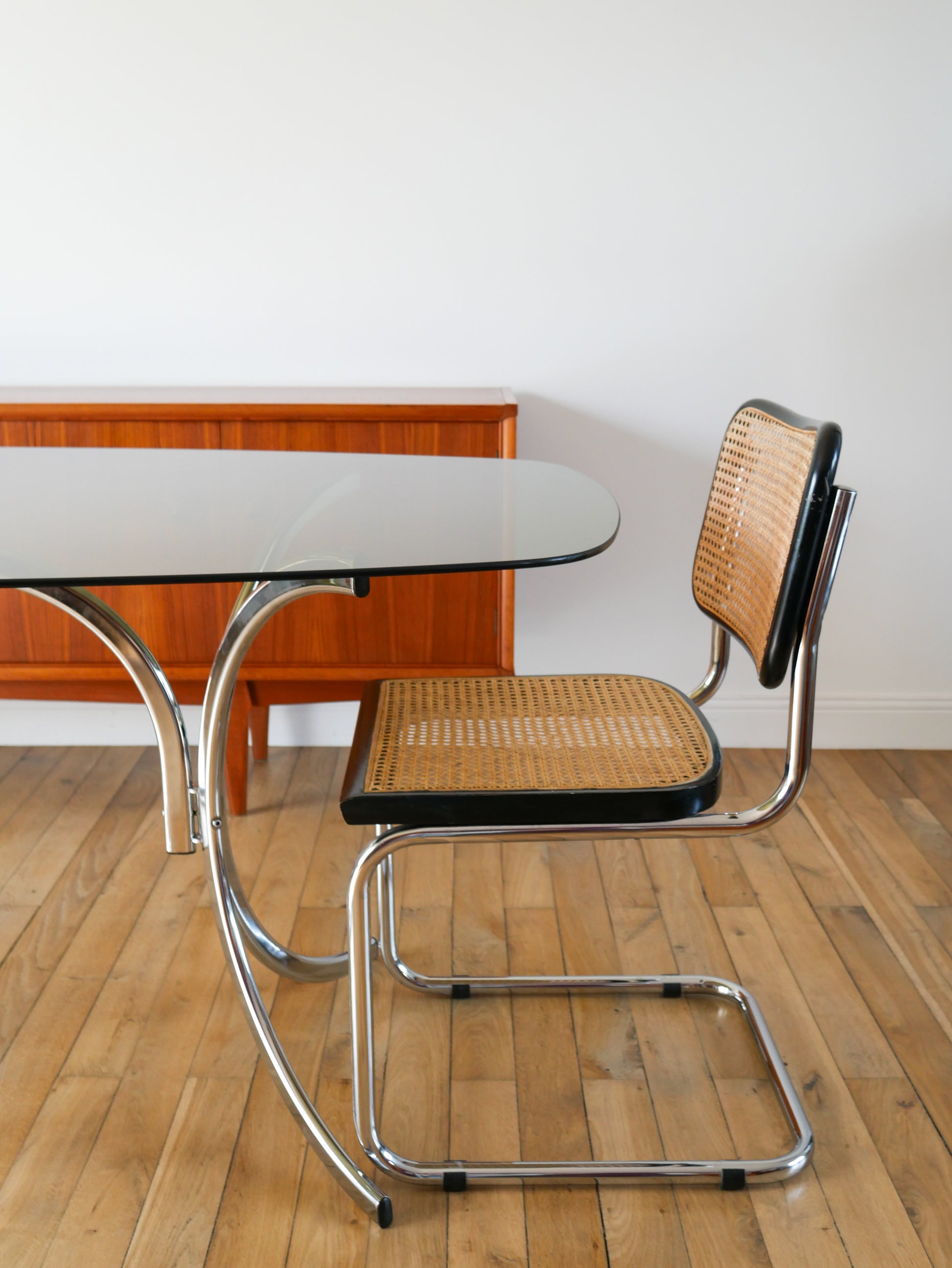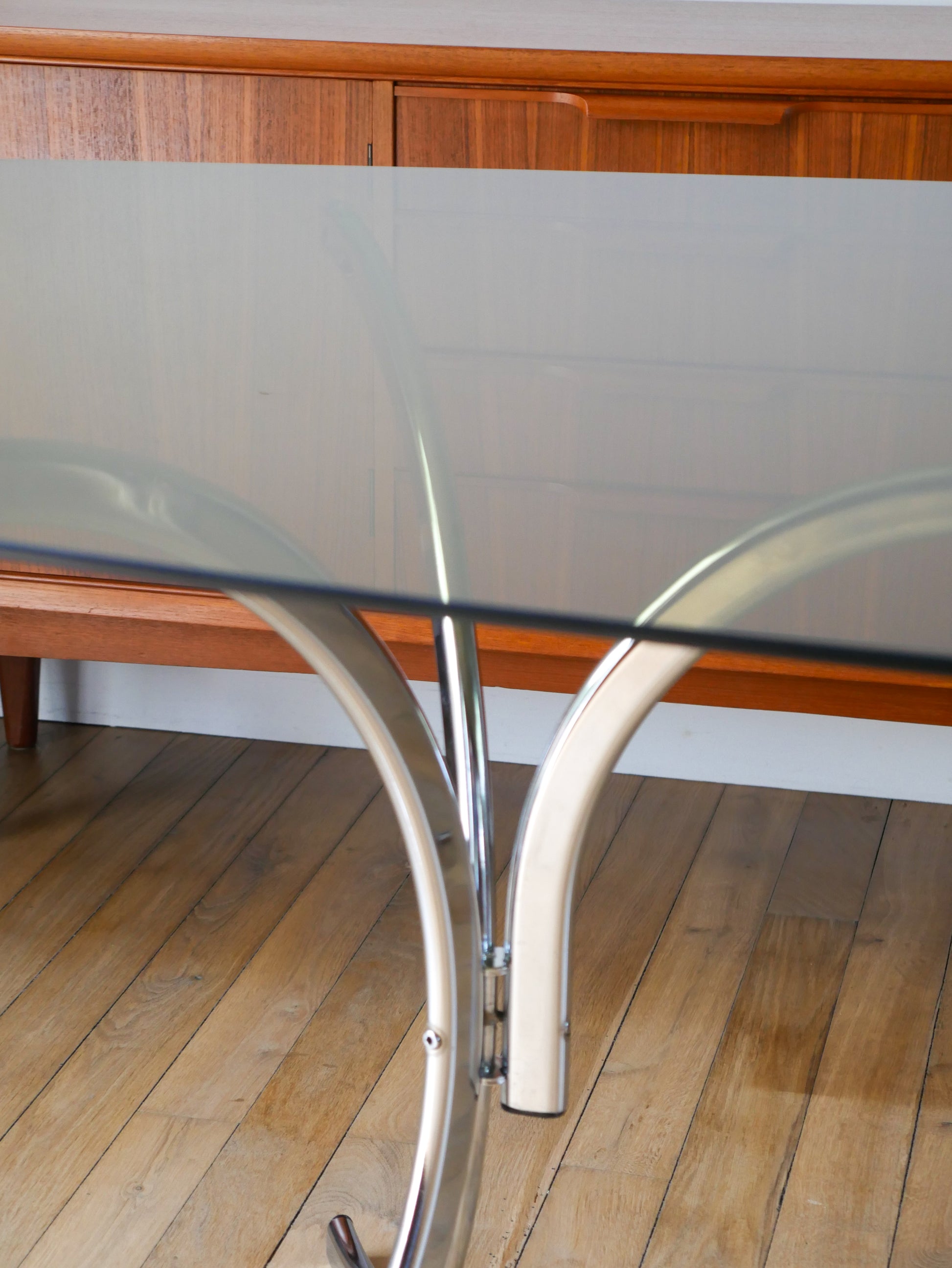 Table de salon en verre fumé et piètements en chrome, dans le goût de Gastone Rinaldi, Design, 1970