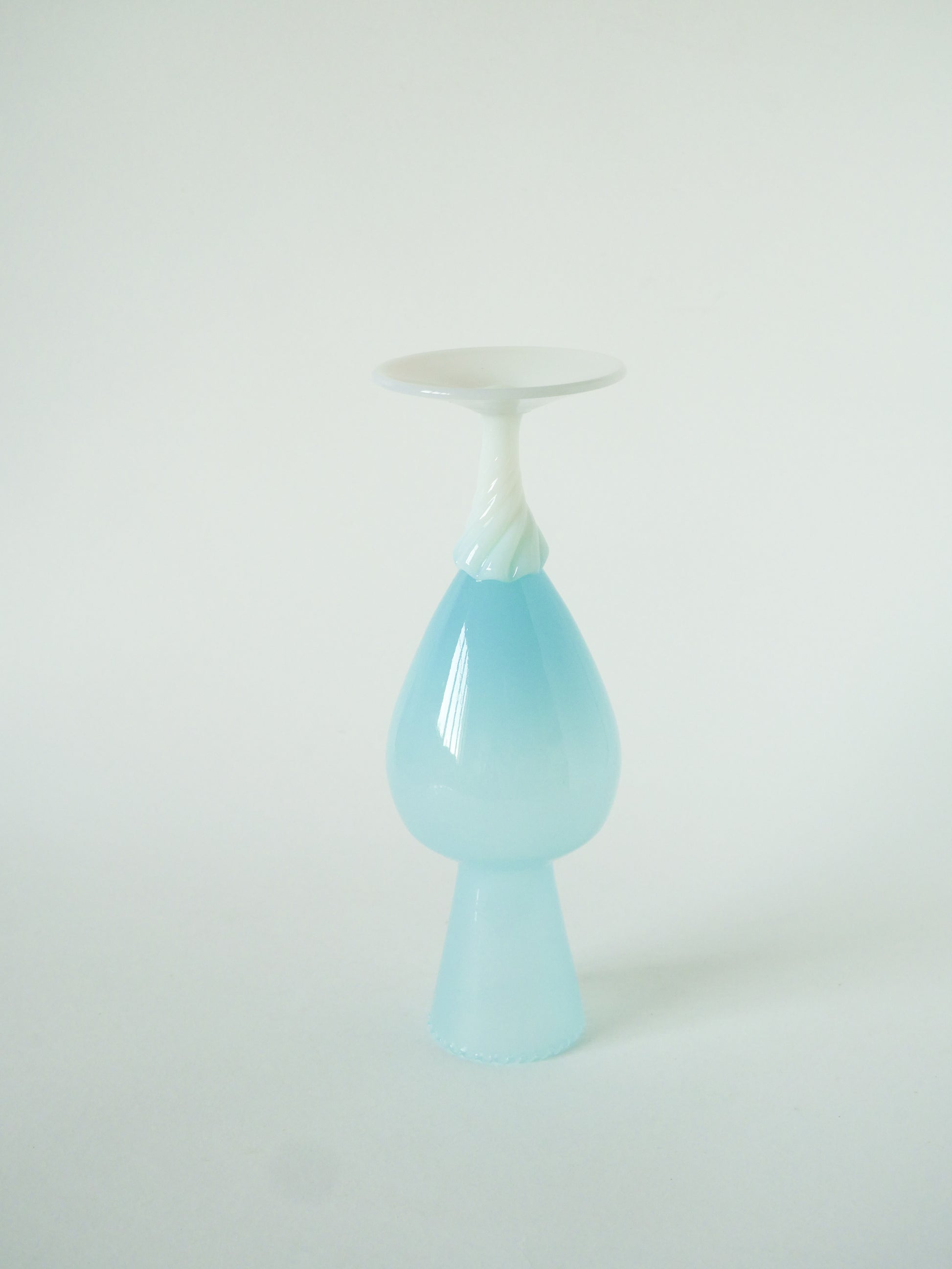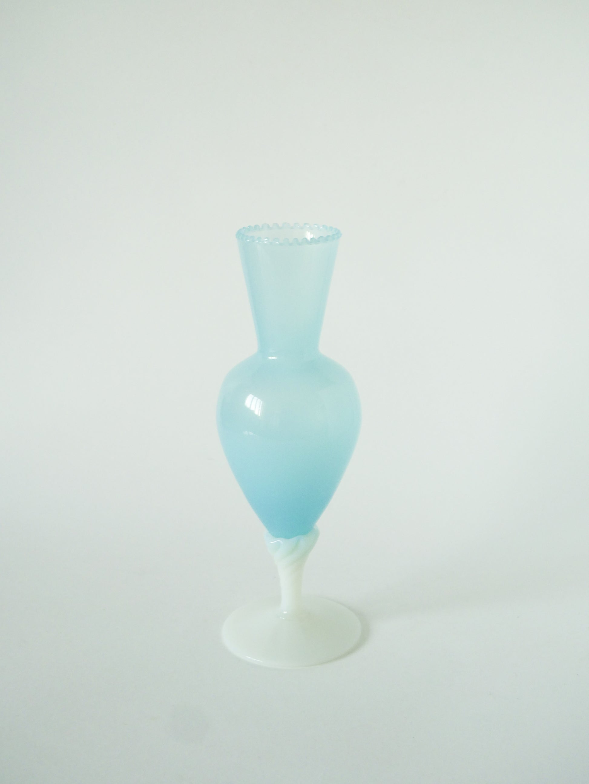 Vase en opaline pieds torsadé, Bleu Ciel et Blanc, 1960