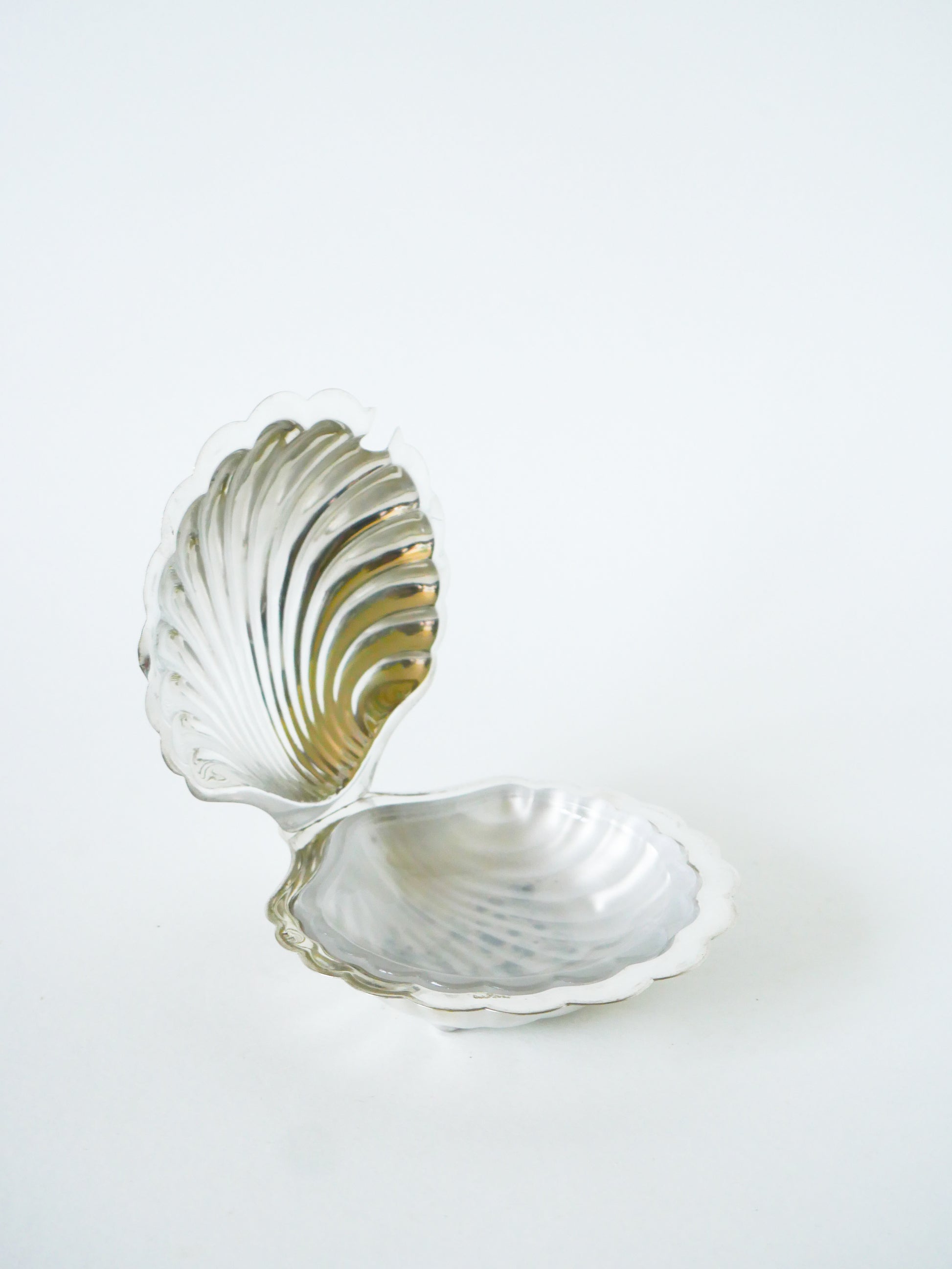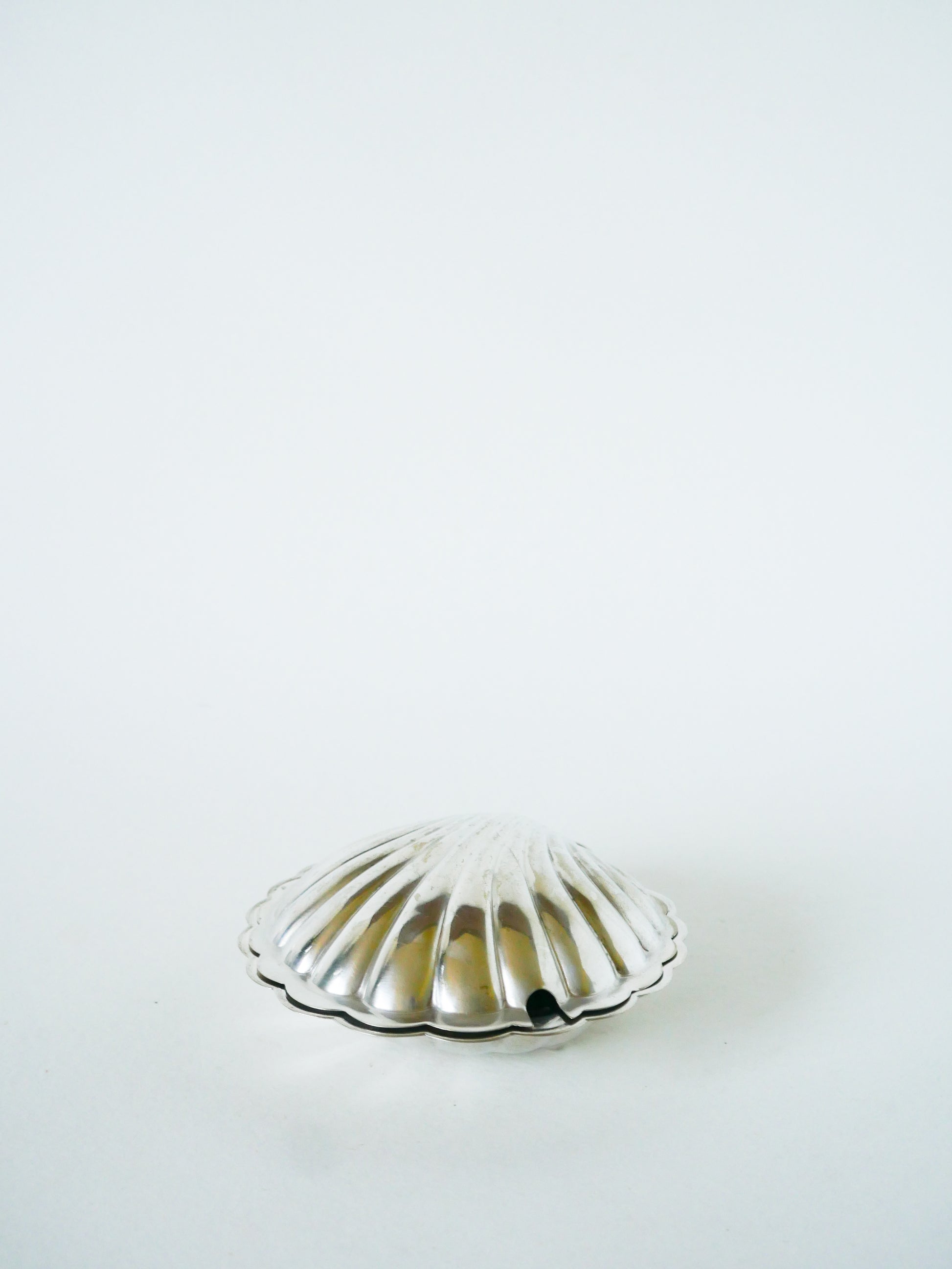 Vide-poche coquillage en métal argenté et verre, 1970