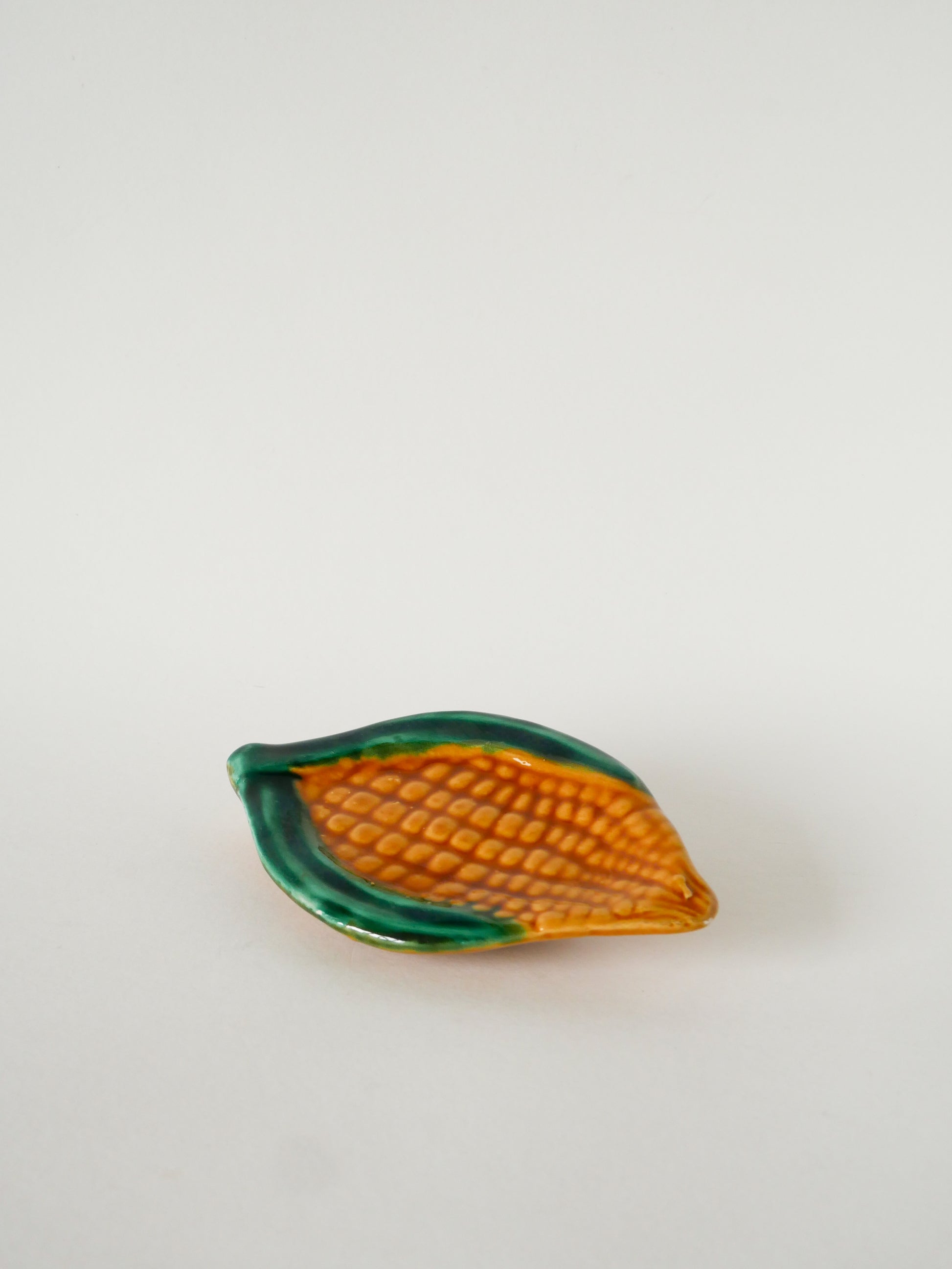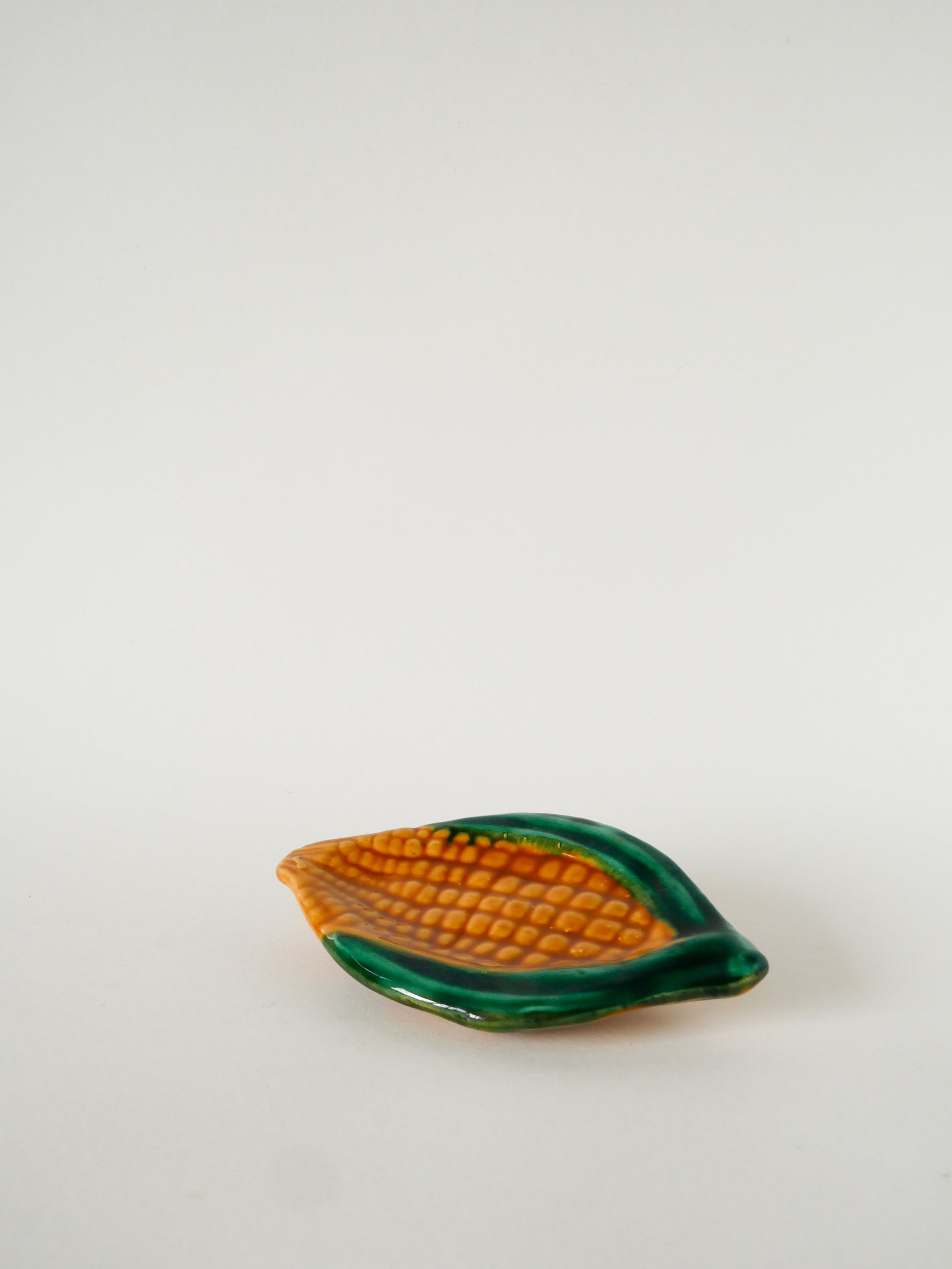 Vide-poche en barbotine, modèle Maïs, Jaune et Vert, signé Vallauris, 1970