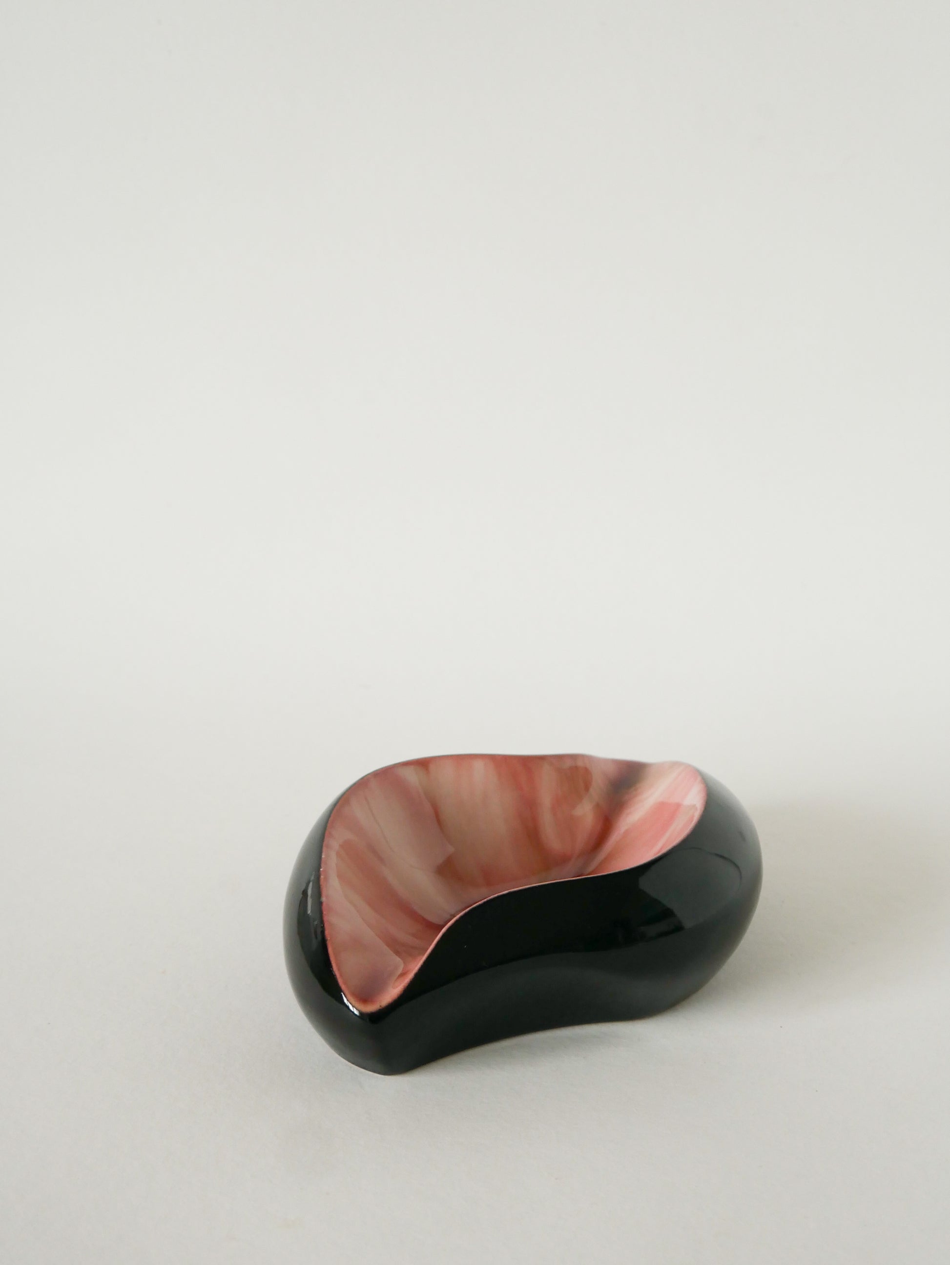 Vide-poche en céramique, forme libre, Noir et Rose, 1970