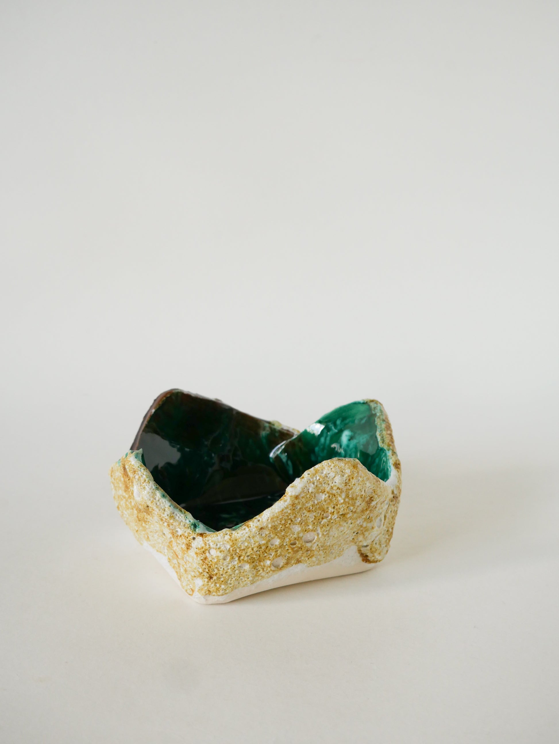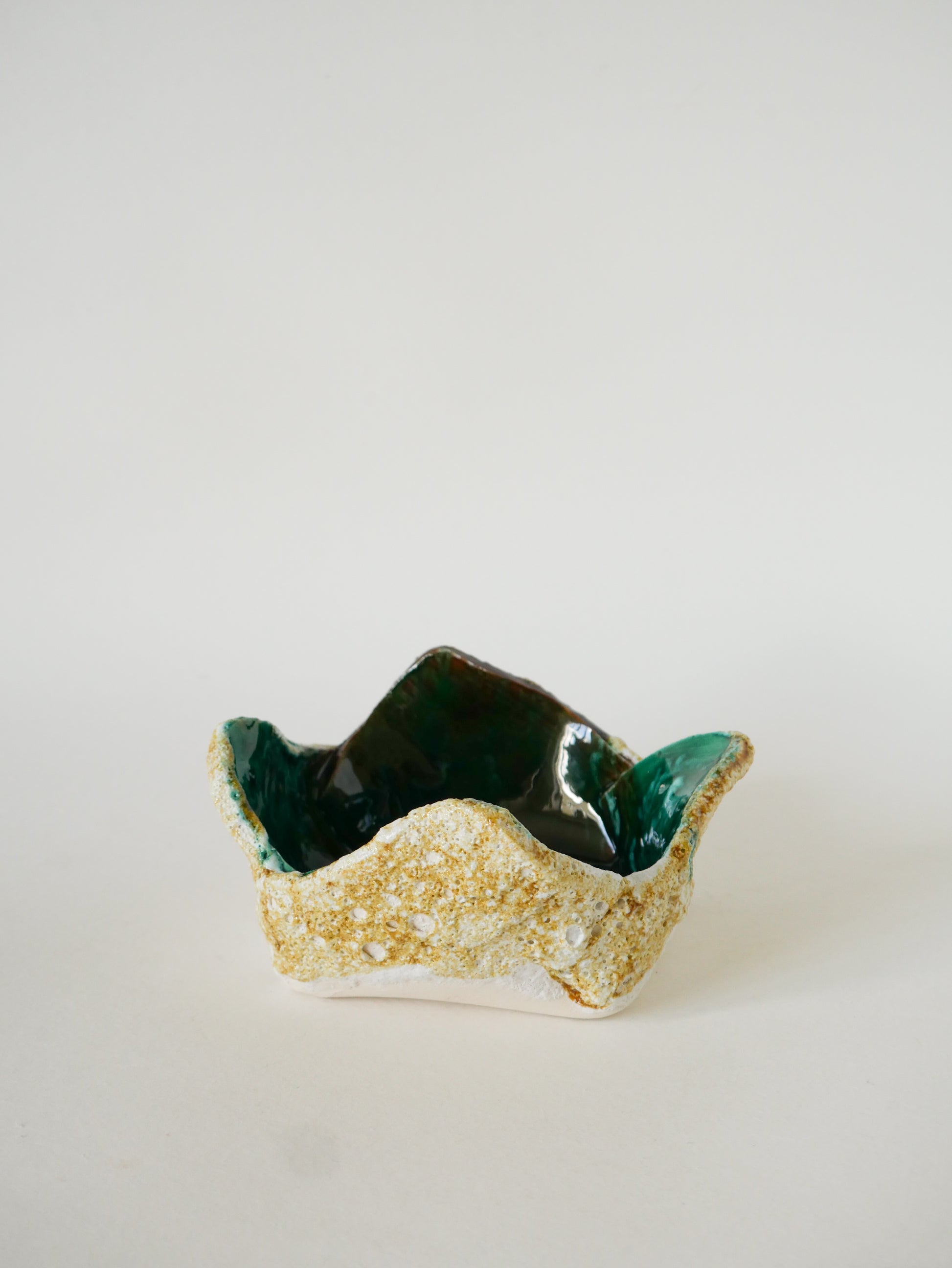 Vide-poche en Fat Lava, encolure Fleur, Jaune & Vert, 1970 - 15 X 7 cm