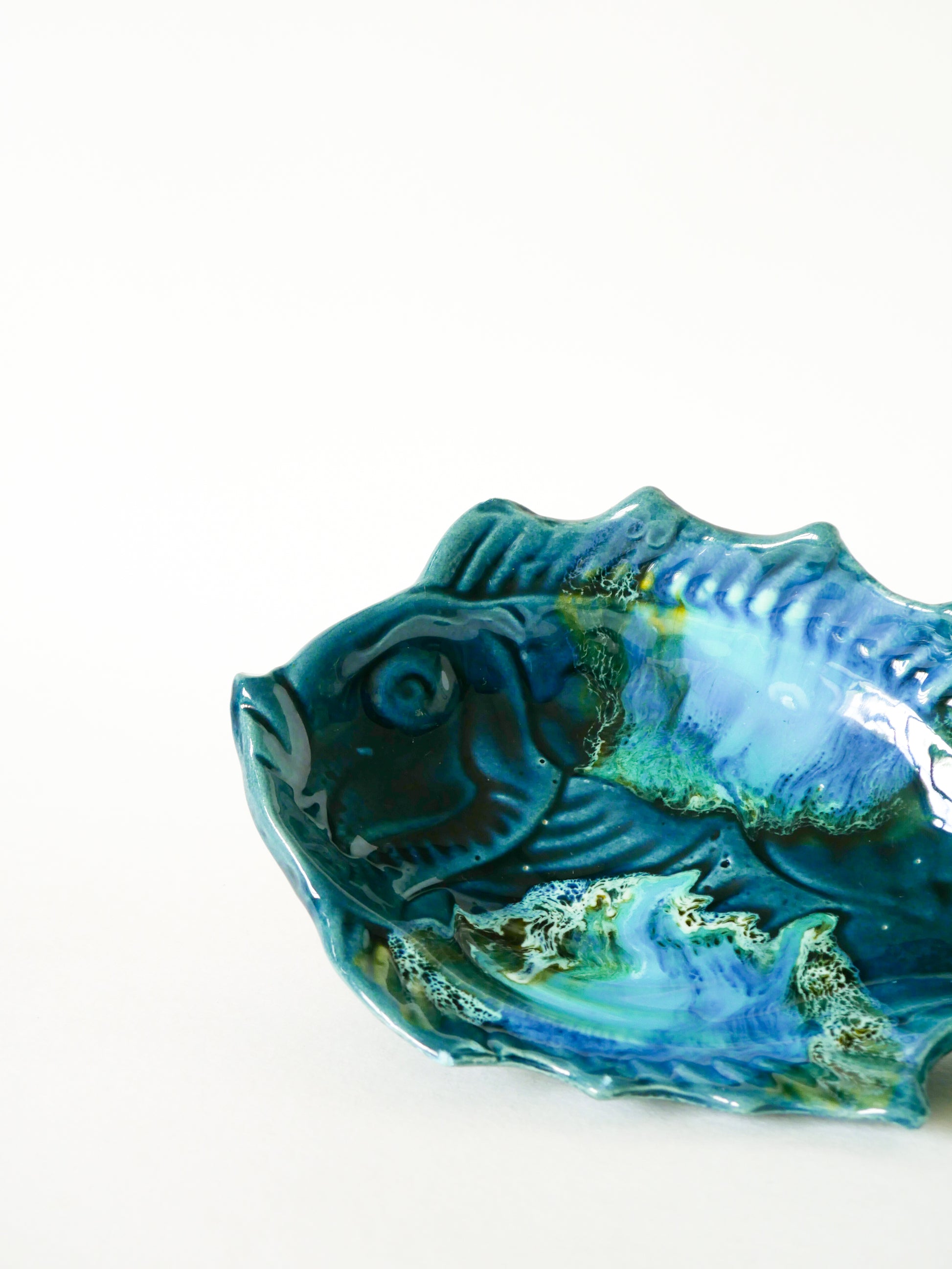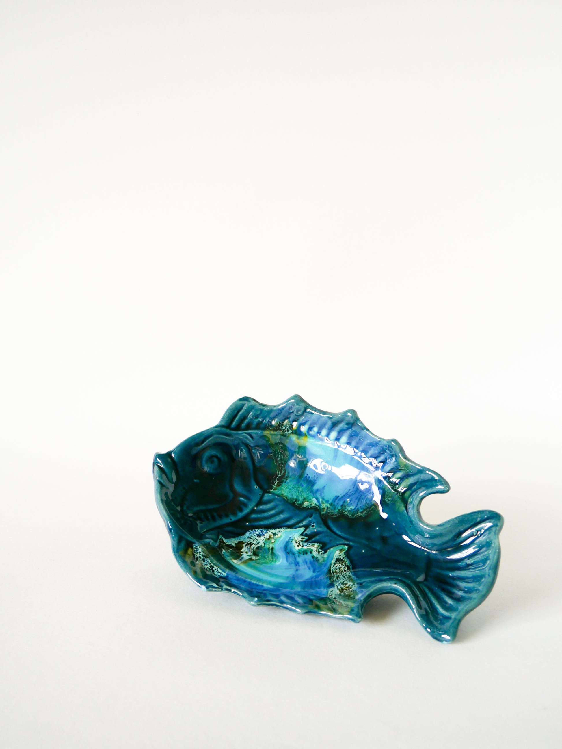 Vide-poche poisson en céramique, Bleu, Vallauris, 1970